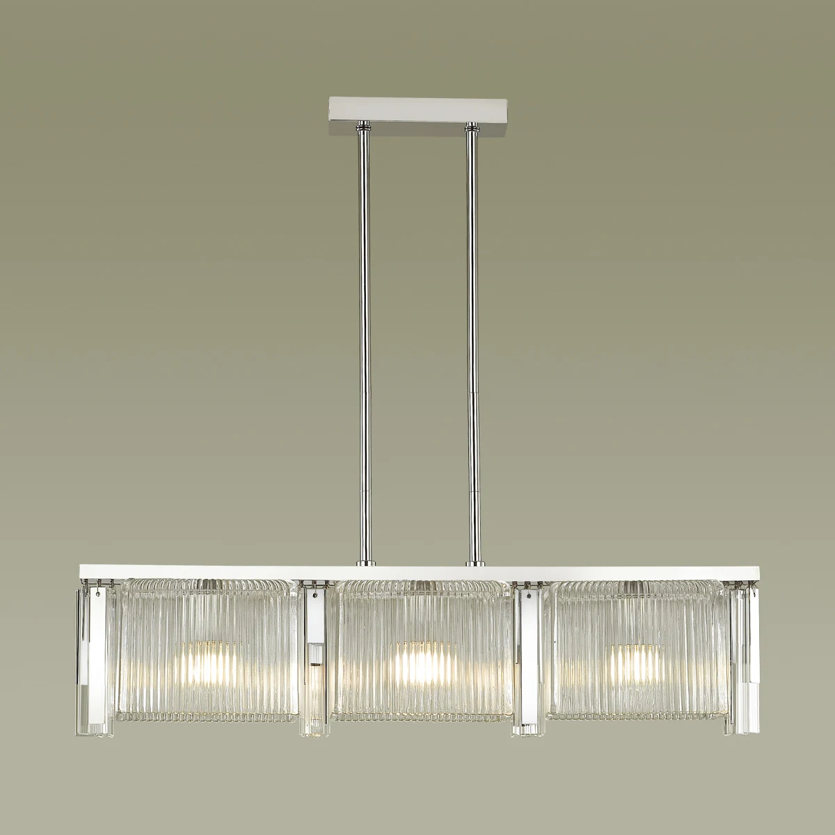 Люстра на штанге Odeon Light Gatsby 4871/3 от Odeon Light, подходит для кухни, для гостиной, в стиле современный, арт-деко. Материал — металл, цвет хром, плафон из стекла, цвет плафона прозрачный, форма плафона — квадратные. Модель имеет 3 лампы, цоколь E14, мощность 120 Вт. Крепление — планка. Степень защиты IP20. Габариты: высота 640 мм, ширина 90 мм. Коллекция Gatsby.