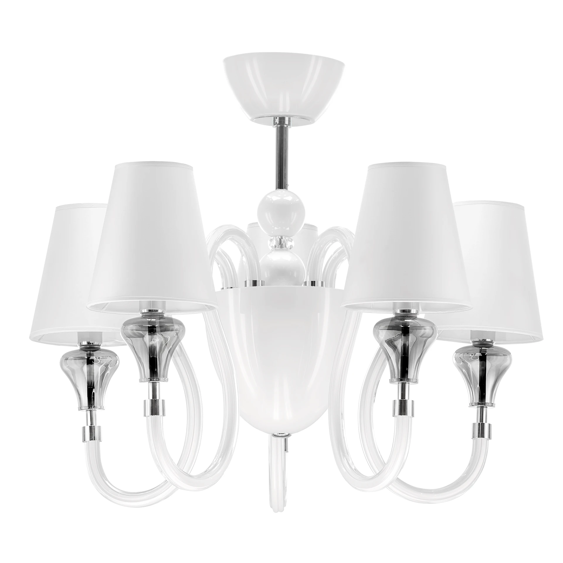 Потолочная люстра Lightstar Otto 809056 от Lightstar, подходит для спальни, в стиле классика. Материал — металл, цвет хром, плафон из стекло, цвет плафона белый, форма плафона — круглый абажур. Модель имеет 5 ламп, цоколь E14, мощность 200 Вт. Поддержка диммера. Габариты: высота 500 мм, ширина 700 мм, диаметр 700 мм. Коллекция Otto.
