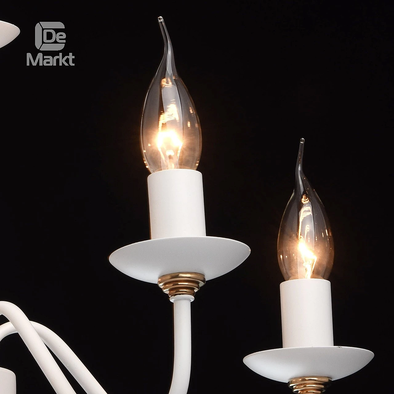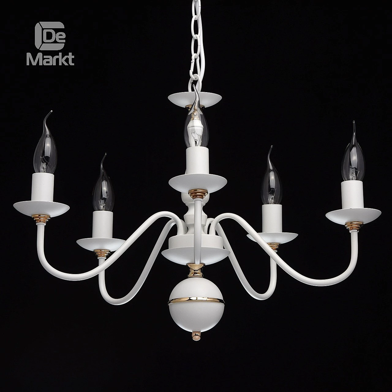 Подвесная люстра De Markt Свеча 301018705 от De Markt, подходит для гостиной, для спальни, в стиле классика. Материал — металл, цвет белый. Модель имеет 5 ламп, цоколь E14, мощность 300 Вт. Поддержка диммера. Степень защиты IP20. Габариты: высота 730 мм, ширина 520 мм, диаметр 520 мм. Коллекция Свеча, возможность регулировки высоты — Есть.