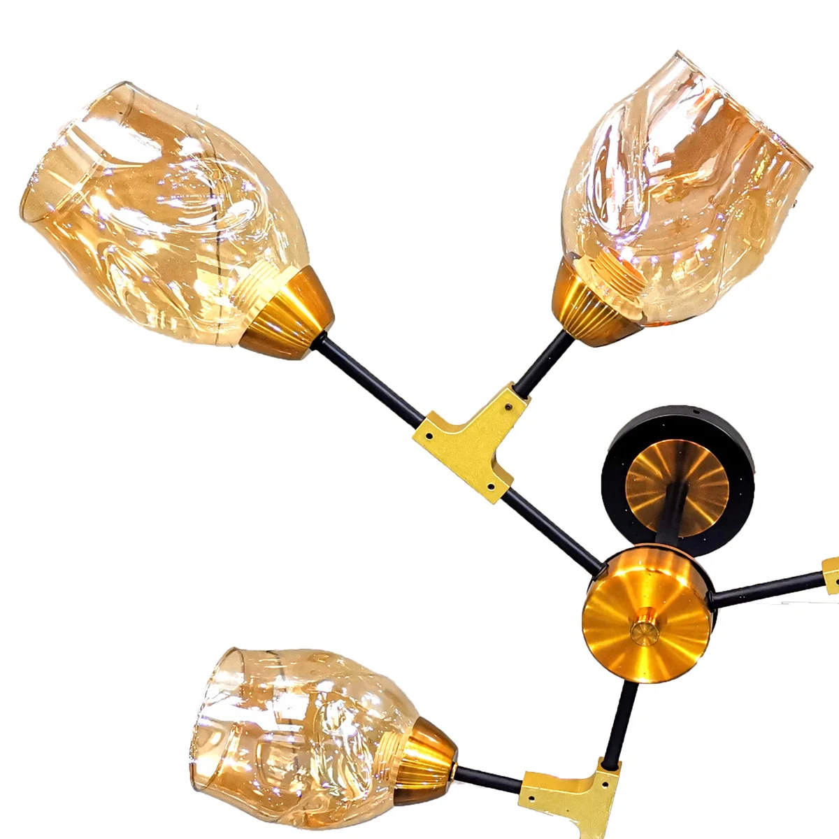 Потолочная люстра Reluce 81702-0.3-06 от Reluce — потолочные люстры. Материал — металл, цвет черный, плафон из стекла, цвет плафона коричневый, форма плафона — овал. Модель имеет 6 ламп, мощность 60 Вт, площадь освещения до 48 кв. м. Крепление — монтажная планка. Габариты: высота 180 мм, ширина 800 мм.
