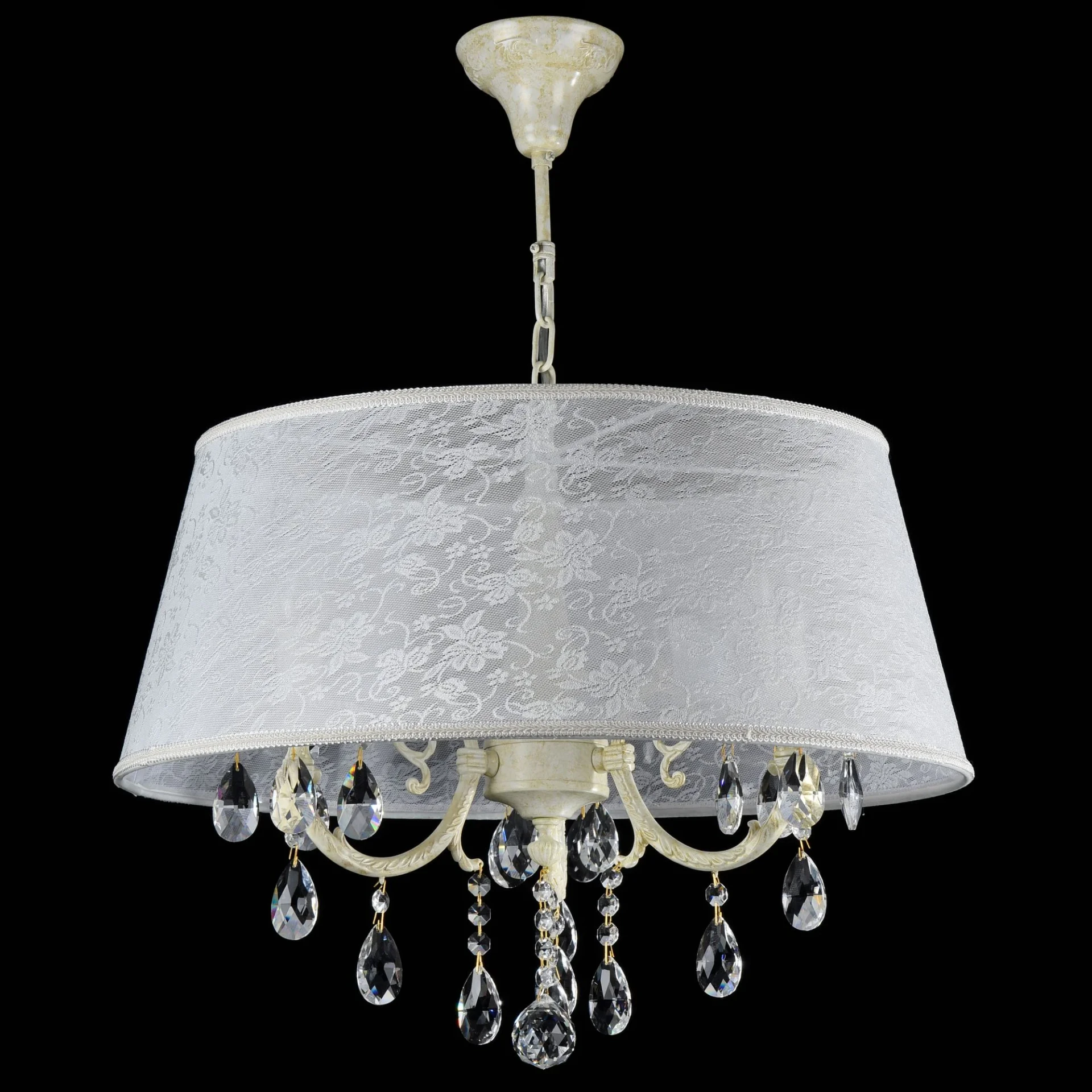 Подвесная люстра Maytoni Filomena ARM390-33-W от Maytoni, подходит для гостиной, для спальни, в стиле классика, прованс, хрусталь. Материал — металл, цвет слоновая кость, плафон из органза, цвет плафона белый, форма плафона — круглый абажур. Модель имеет 3 лампы, цоколь E14, мощность 120 Вт. Поддержка диммера. Габариты: высота 950 мм, ширина 550 мм, диаметр 550 мм. Декор — хрустальные подвески, коллекция Filomena, возможность регулировки высоты — Есть.