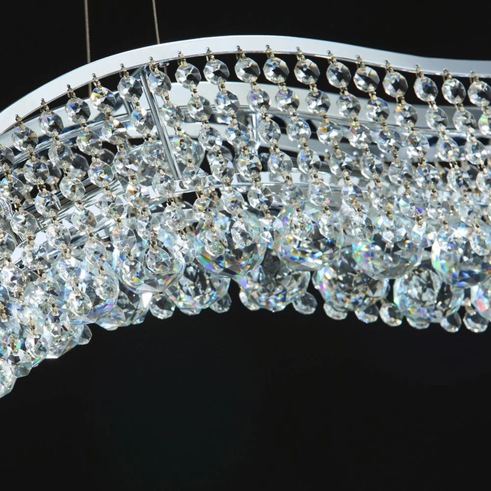 Подвесная люстра Maytoni Snake D957-AB-N от Maytoni, подходит для гостиной, в стиле хрусталь. Материал — железо, цвет серебро, плафон из хрусталь, цвет плафона прозрачный. Модель имеет 5 ламп, цоколь E14, мощность 200 Вт. Поддержка диммера, крепление — планка. Степень защиты IP20. Габариты: высота 1375 мм, ширина 906 мм, глубина 131 мм. Коллекция Snake.