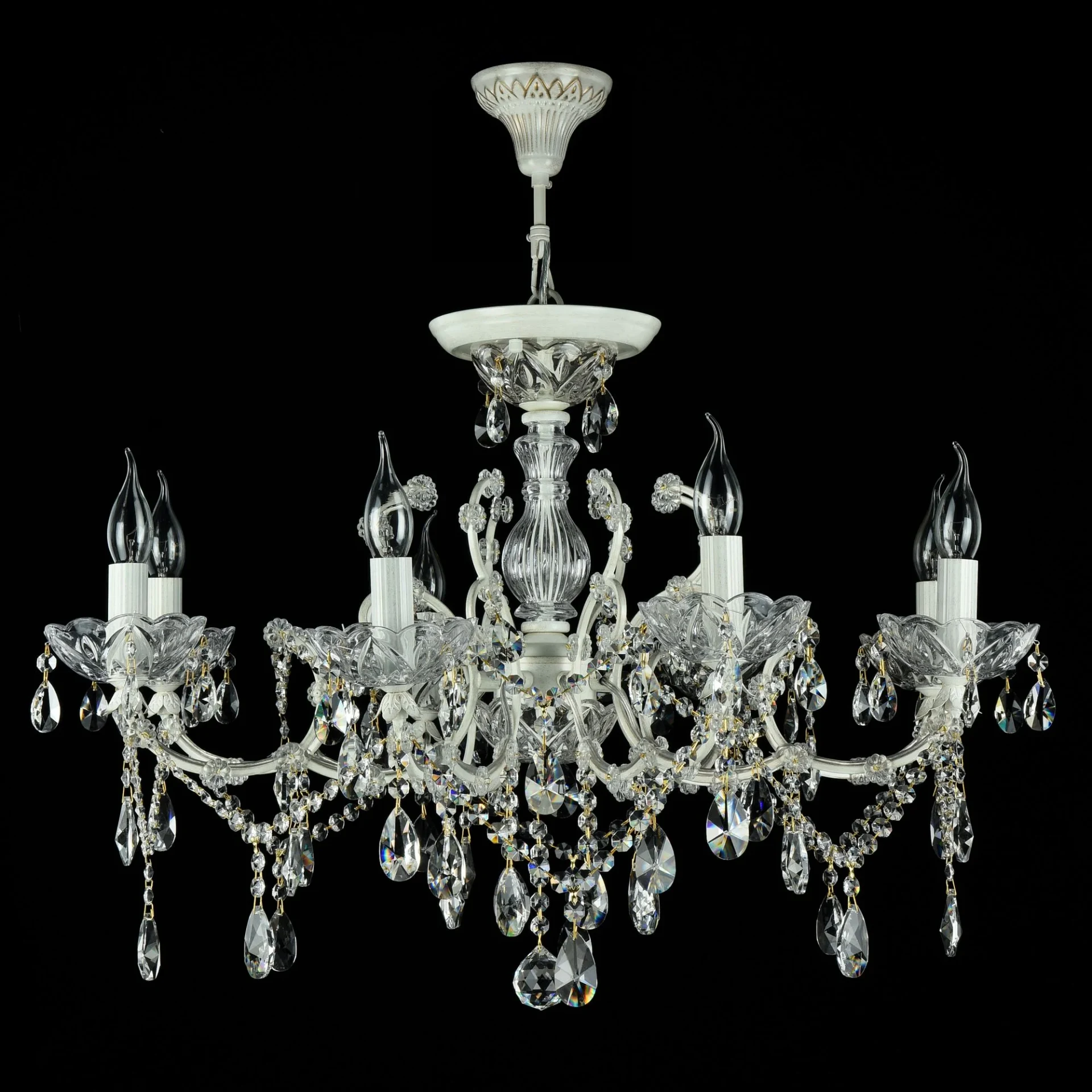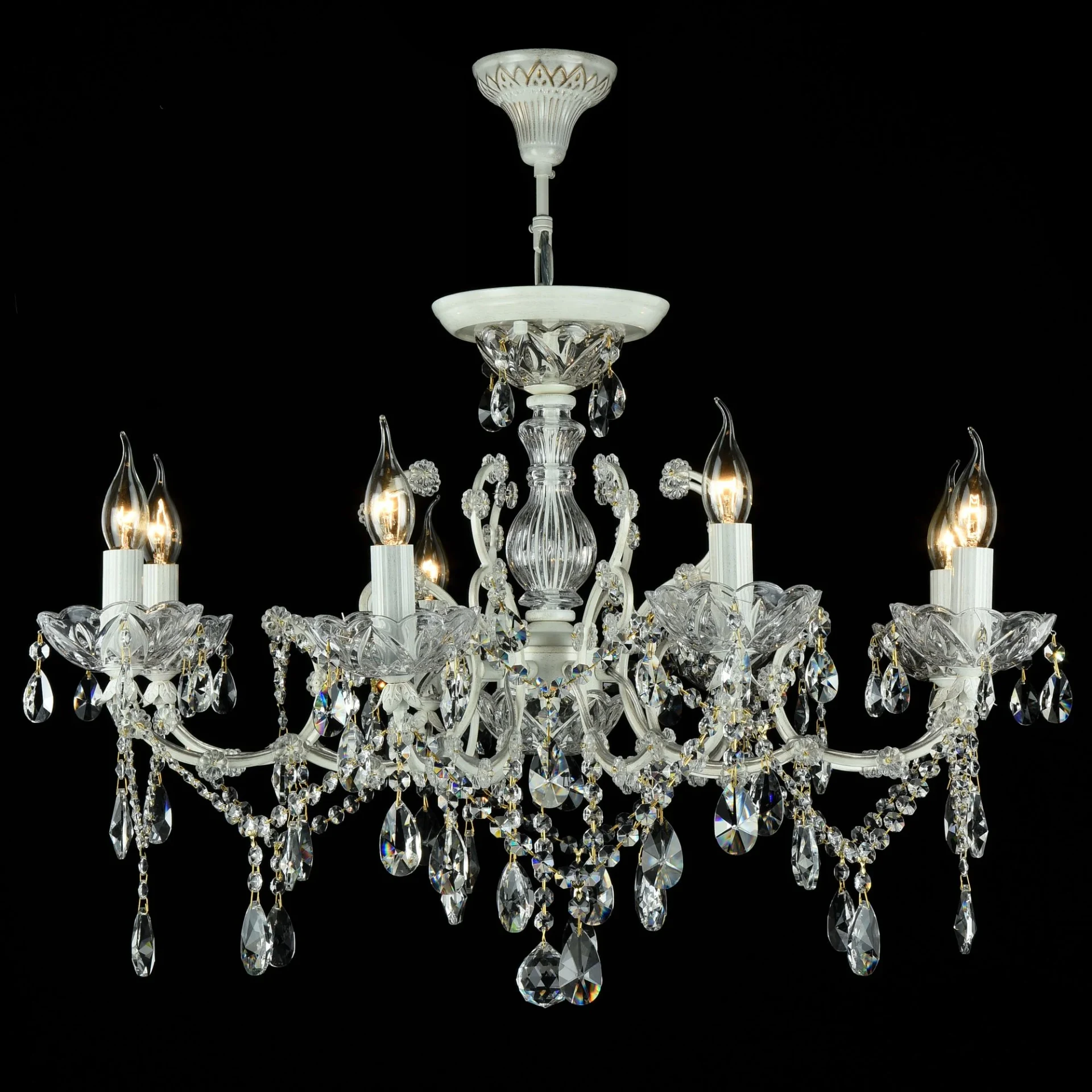 Подвесная хрустальная люстра Sevilla Maytoni DIA004-08-WG от Maytoni, подходит для гостиной, в стиле хрусталь. Материал — металл, цвет кремовое золото. Модель имеет 8 ламп, цоколь E14, мощность 480 Вт. Направление света — вверх, крепление — крюк. Степень защиты IP20. Габариты: высота 960 мм, ширина 760 мм, диаметр 760 мм. Коллекция Sevilla.