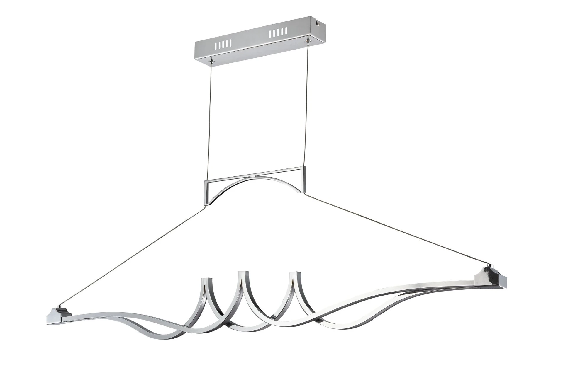 Подвесная люстра Maytoni Wave MOD556-02-N от Maytoni, подходит для гостиной, в стиле хай-тек. Материал — металл, цвет хром, форма плафона — длинные. Модель имеет 2 лампы, цоколь LED, мощность 29.0. Полностью светодиодная, направление света — равномерное, цветовая температура теплый (3000k), крепление — планка. Степень защиты IP20. Габариты: высота 1200 мм, ширина 1100 мм, глубина 33 мм. Коллекция Wave, световой поток — 2320.