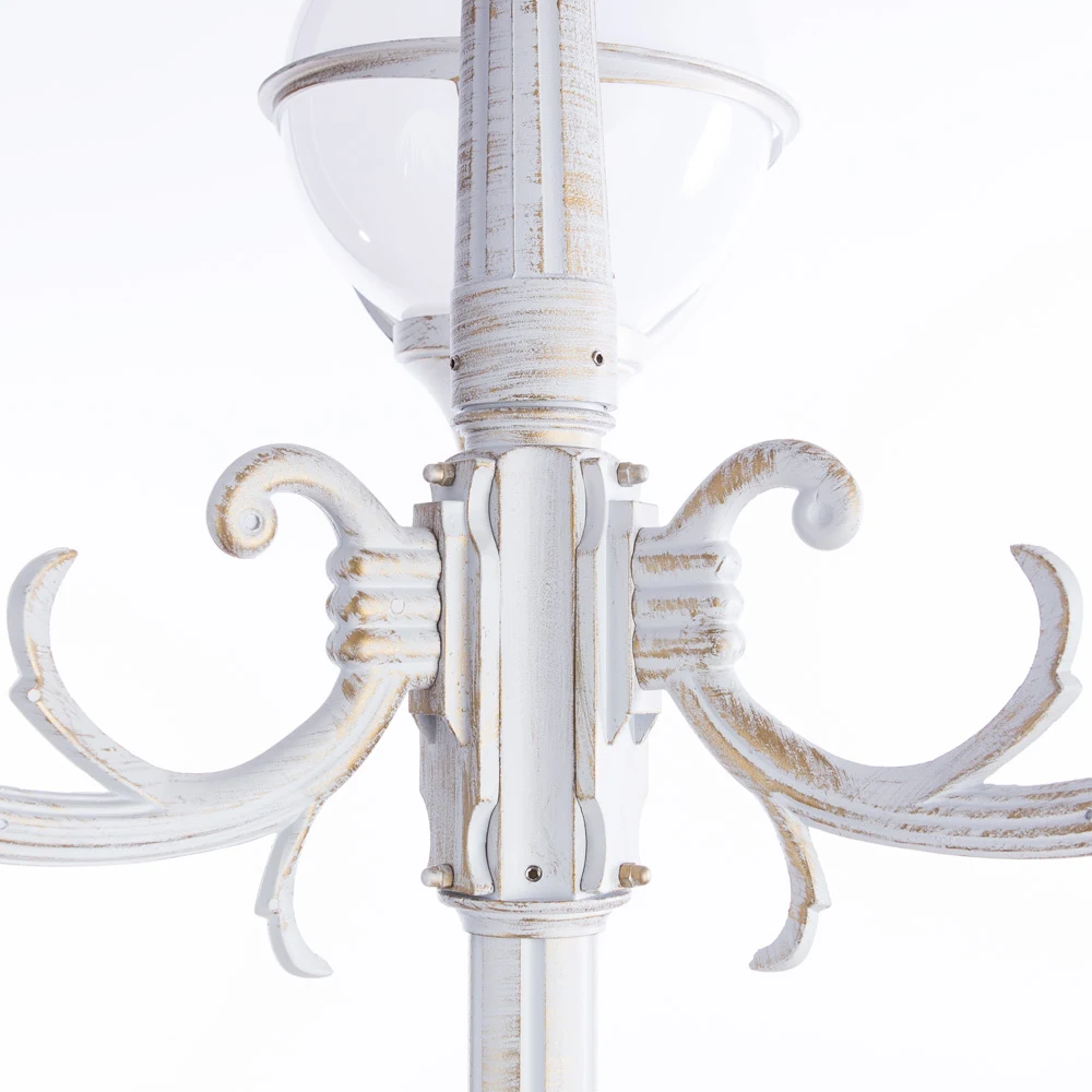 Столб фонарный уличный Arte Lamp MONACO A1497PA-4WG от Arte Lamp, в стиле классика. Материал — алюминий, цвет белый, плафон из пластик. Модель имеет 4 лампы, цоколь E27, мощность 400 Вт. Степень защиты IP44. Габариты: высота 2300 мм, ширина 750 мм. Коллекция Monaco.