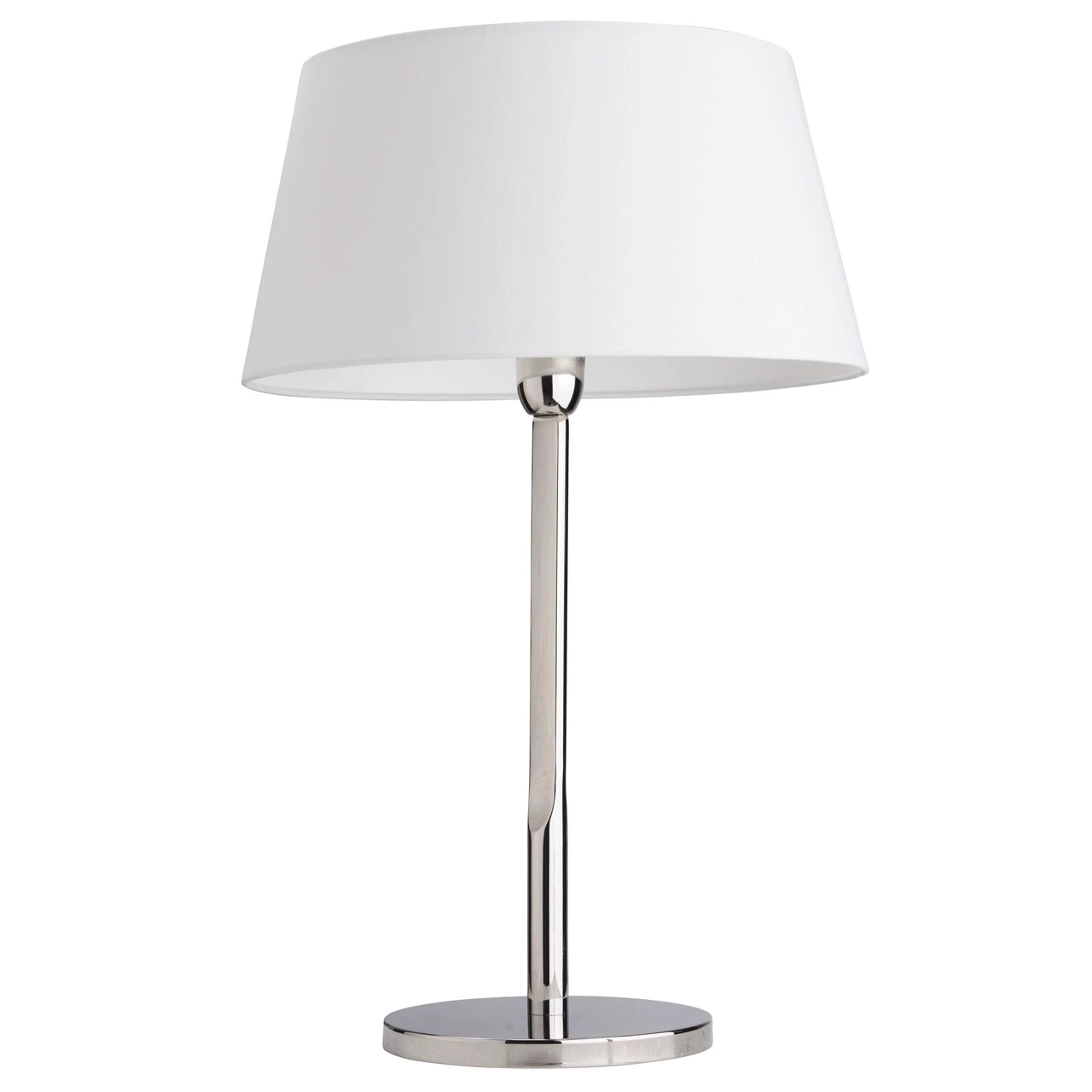 Настольная лампа MW Light Мариот 629030201 от MW-Light, подходит для спальни, в стиле современный. Материал — металл, цвет хром, плафон из текстиль, цвет плафона белый. Модель имеет 1 лампу, цоколь E27, мощность 60 Вт. Выключатель на шнуре. Степень защиты IP20. Габариты: высота 600 мм, ширина 380 мм, диаметр 380 мм. Коллекция Мариот.