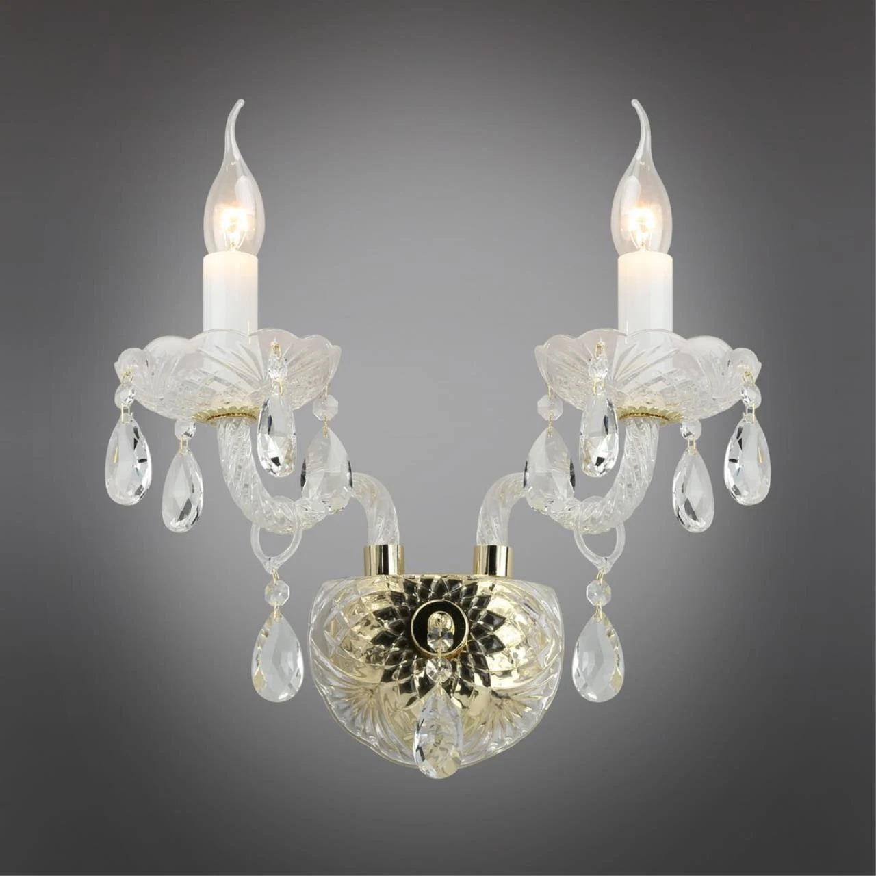 Настенное бра Aployt Anula APL.810.01.02 от Aployt, подходит для гостиной, в стиле классика. Материал — металл, цвет золото. Модель имеет 2 лампы, цоколь E14, мощность 120 Вт. Крепление — планка. Габариты: высота 300 мм, ширина 300 мм. Декор — хрустальные подвески, коллекция Anula, световой поток — 1260.