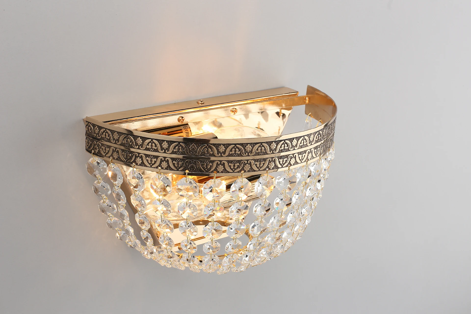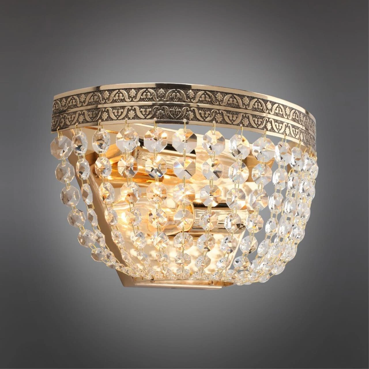 Настенное бра Aployt Helcia APL.756.01.02 от Aployt — настенные бра. Материал — металл, цвет золото с чернением. Модель имеет 2 лампы, цоколь E14, мощность 80 Вт. Крепление — планка. Габариты: высота 150 мм, ширина 250 мм, глубина 140 мм. Коллекция Helcia, бра — Полукруг, бра — Хрусталь.