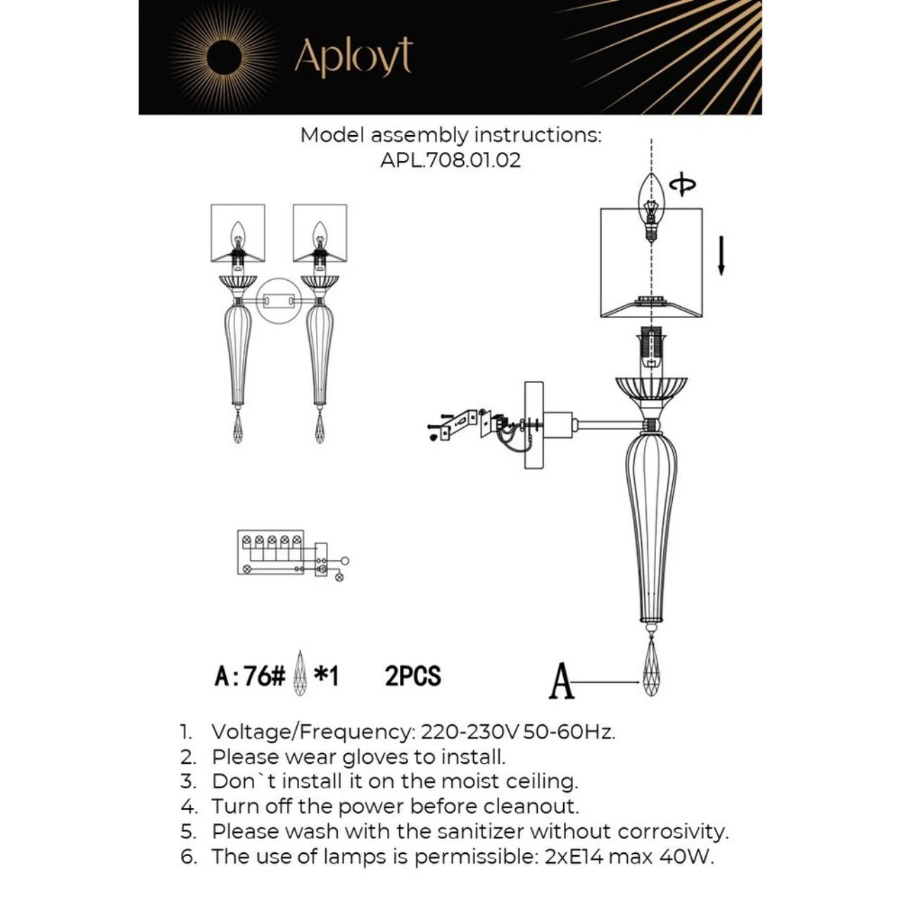 На Настенное бра Aployt Kinia APL.708.01.02 от Aployt действует официальная гарантия производителя — от 2 лет и более. По вопросам гарантии в Беларуси обращайтесь по телефону +375 (29) 801 91 06 или на info@marketsveta.by.