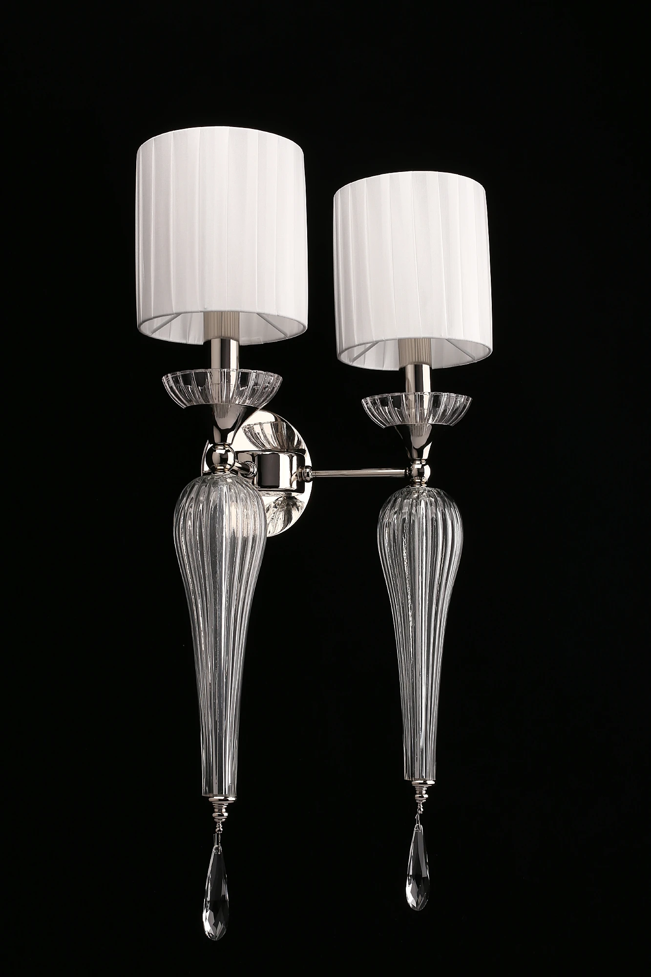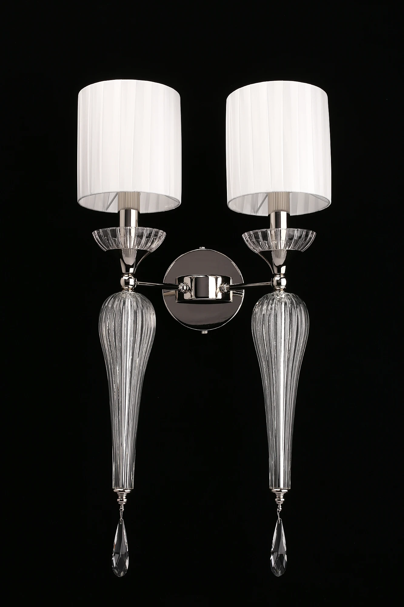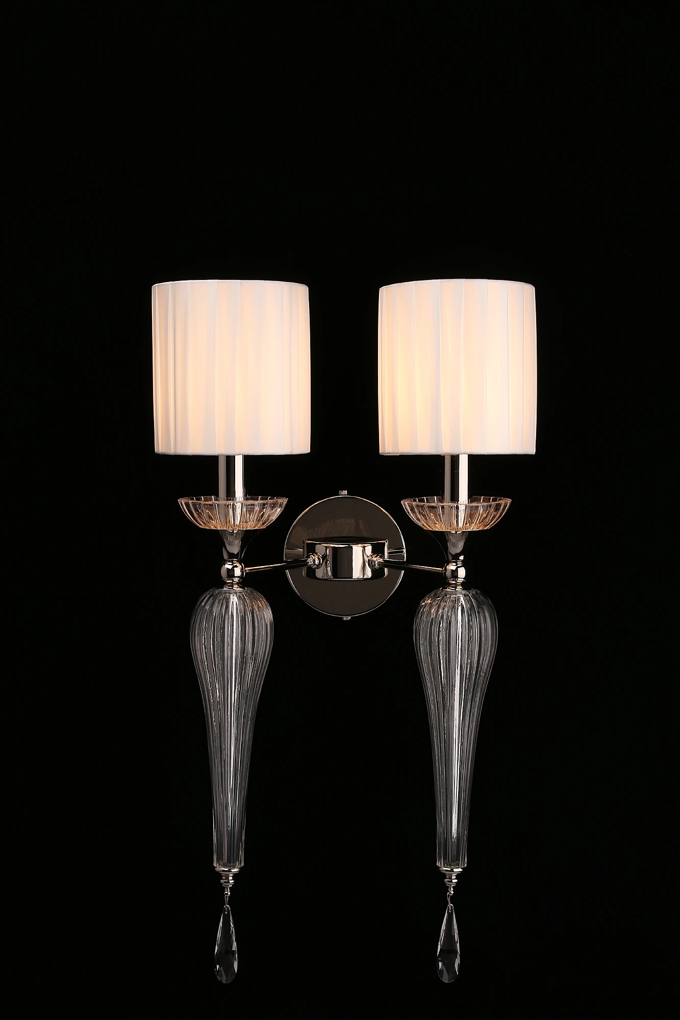 Настенное бра Aployt Kinia APL.708.01.02 от Aployt, подходит для гостиной, в стиле современный, арт-деко. Материал — металл, цвет хром, плафон из ткань, цвет плафона белый, форма плафона — цилиндр. Модель имеет 2 лампы, цоколь E14, мощность 80 Вт. Крепление — планка. Степень защиты IP20. Габариты: высота 640 мм, ширина 340 мм. Декор — хрустальные подвески, коллекция Kinia.
