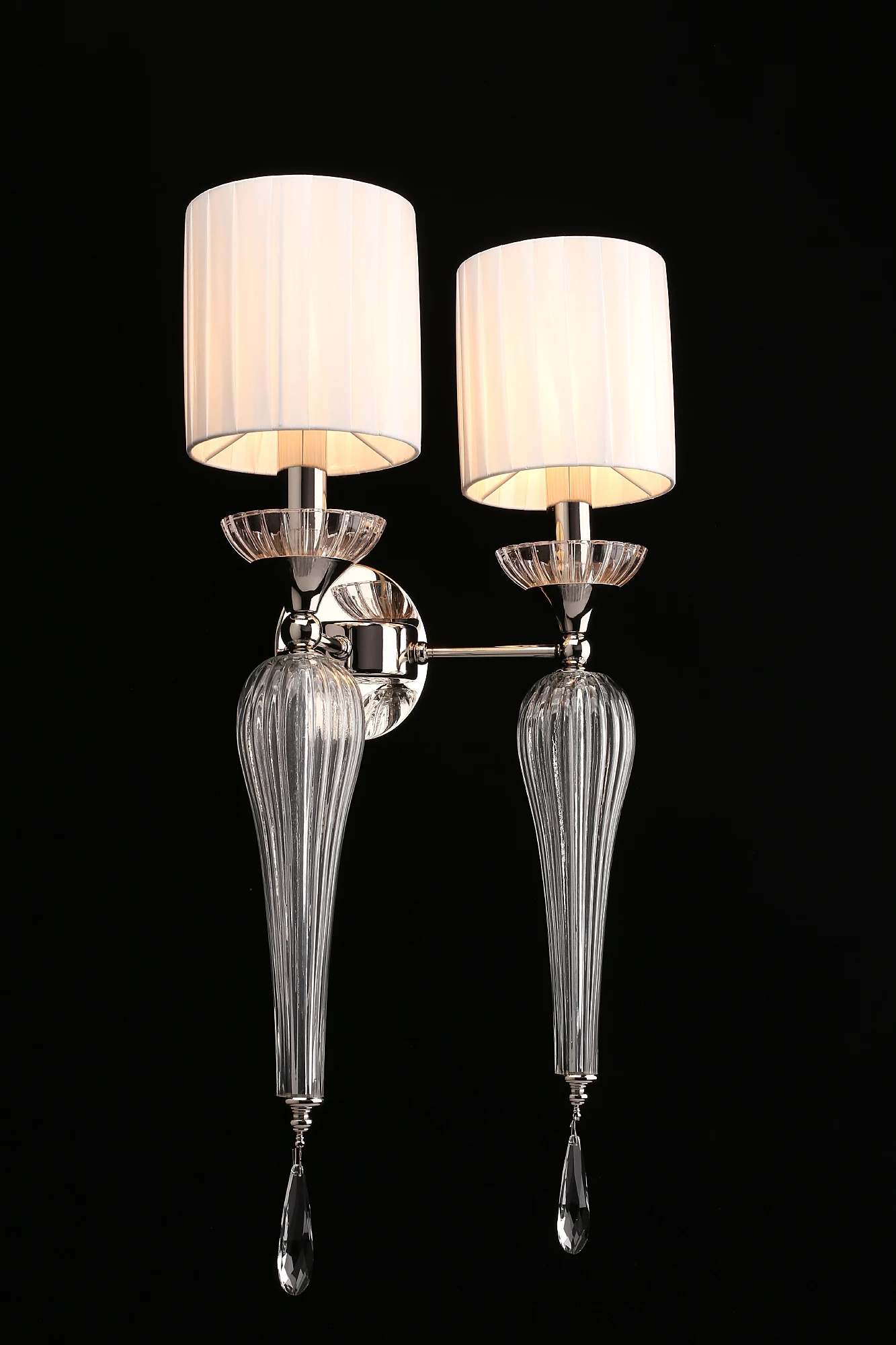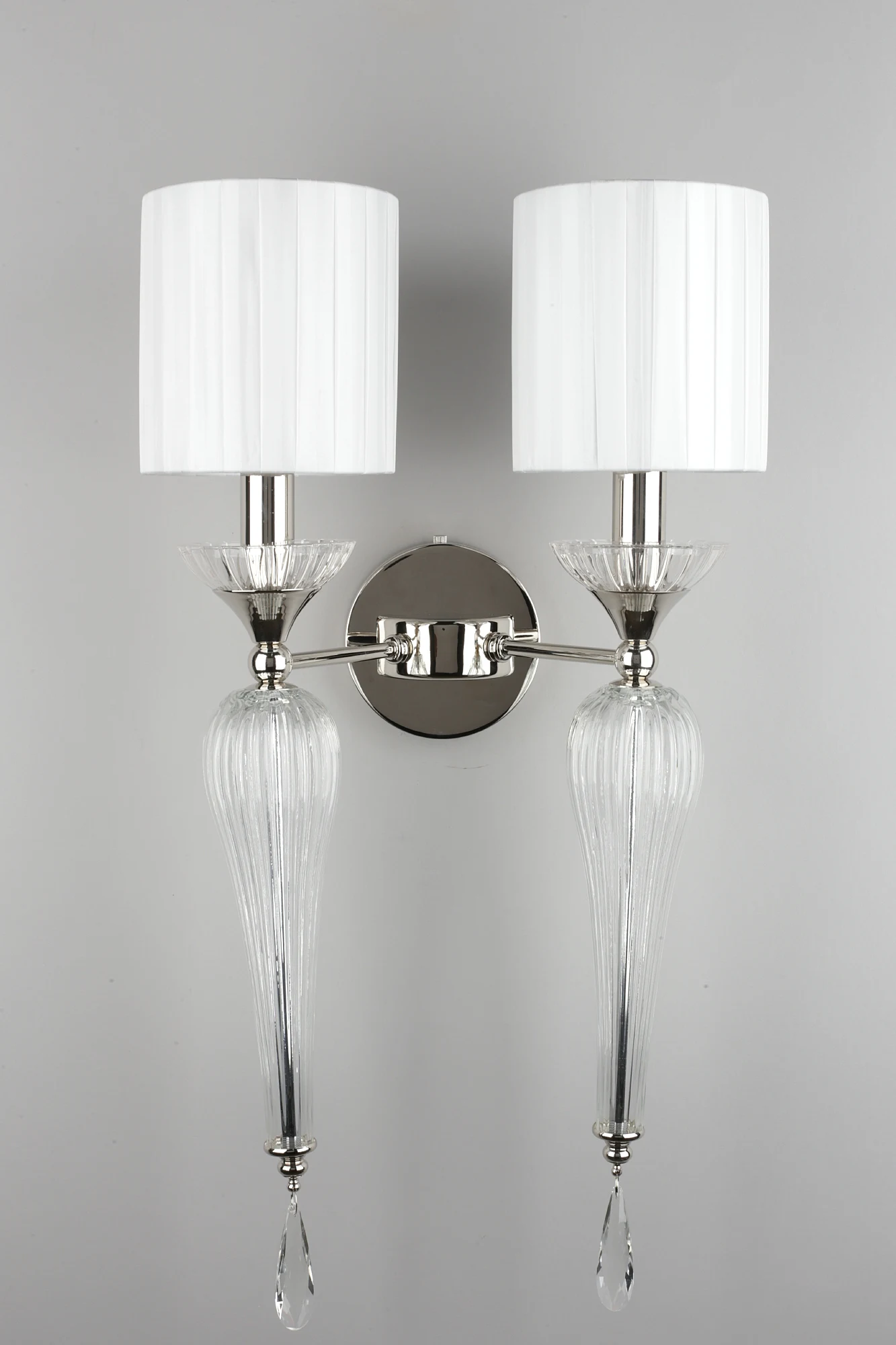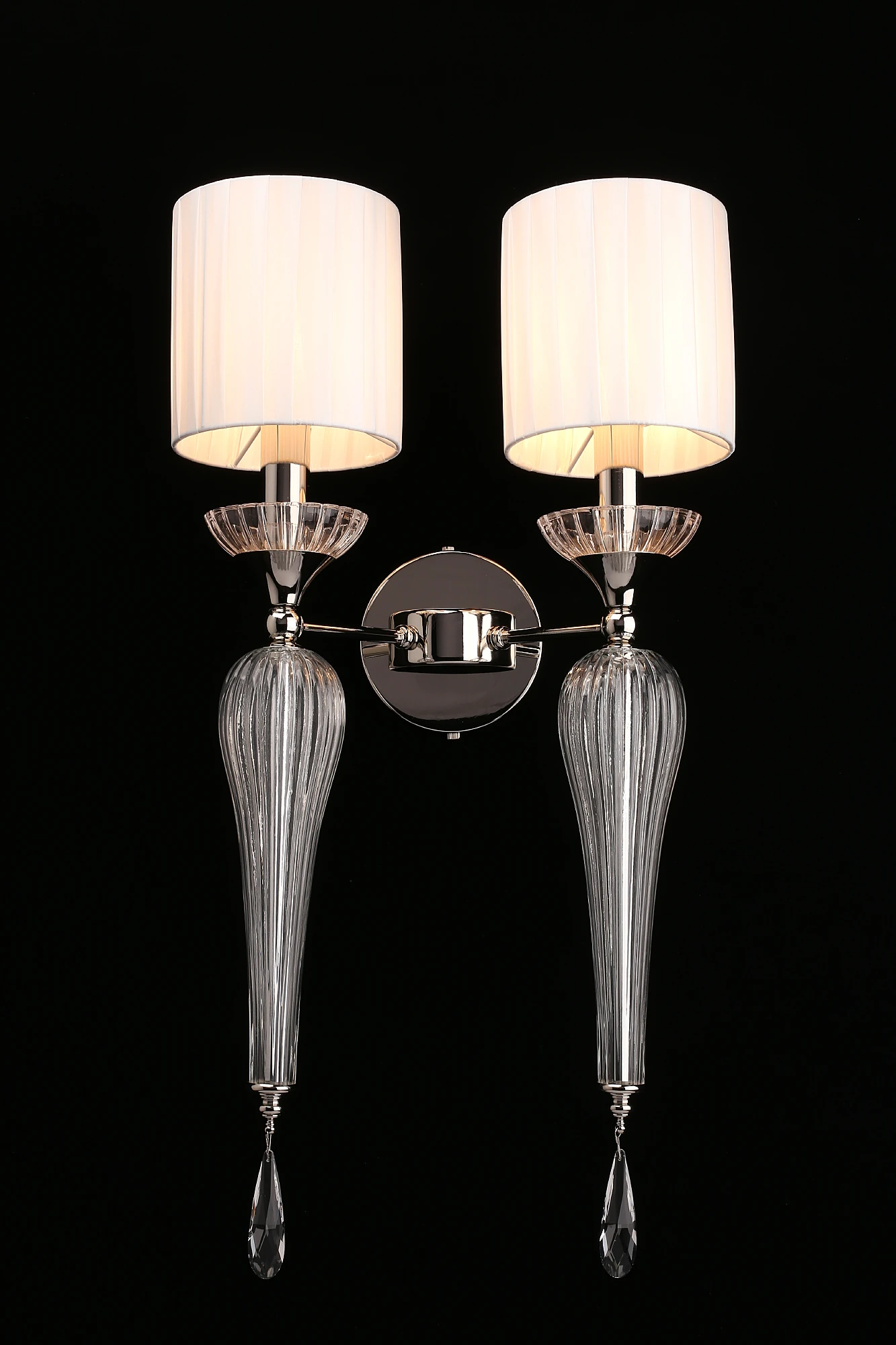 Настенное бра Aployt Kinia APL.708.01.02 от Aployt, подходит для гостиной, в стиле современный, арт-деко. Материал — металл, цвет хром, плафон из ткань, цвет плафона белый, форма плафона — цилиндр. Модель имеет 2 лампы, цоколь E14, мощность 80 Вт. Крепление — планка. Степень защиты IP20. Габариты: высота 640 мм, ширина 340 мм. Декор — хрустальные подвески, коллекция Kinia.
