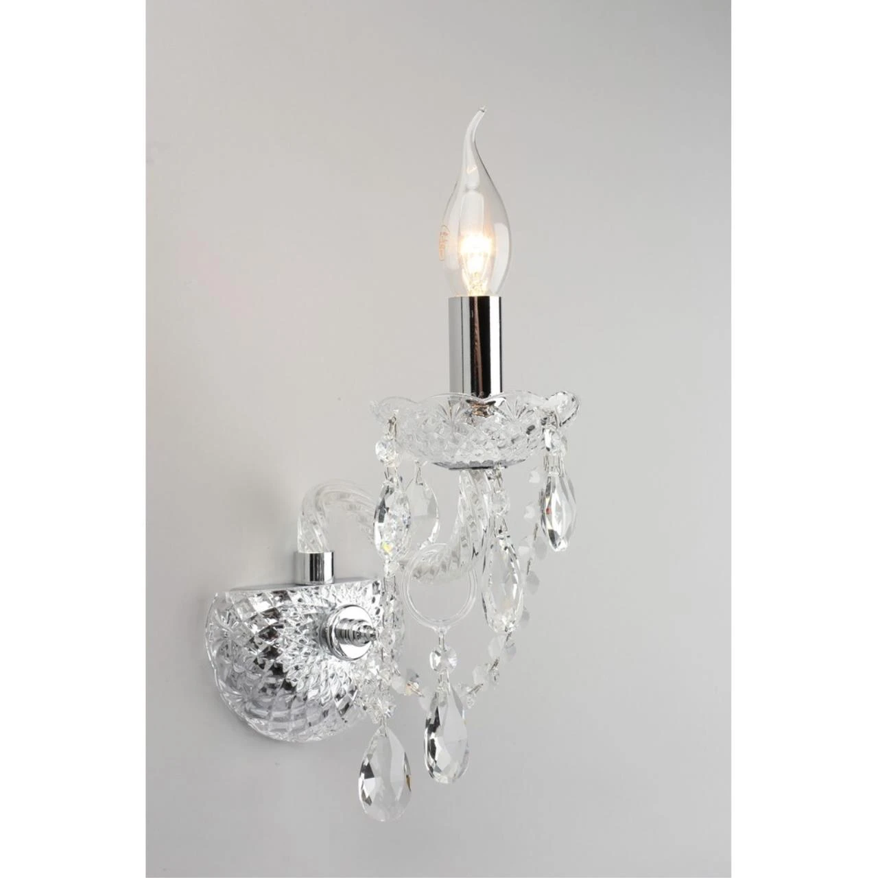 Настенное бра Aployt Koletta APL.755.01.01 от Aployt, подходит для гостиной, в стиле классика. Материал — металл, цвет хром, форма плафона — свечи. Модель имеет 1 лампу, цоколь E14, мощность 40 Вт. Крепление — планка. Габариты: высота 330 мм, ширина 120 мм, глубина 200 мм. Декор — хрустальные подвески, коллекция Koletta, световой поток — 420.