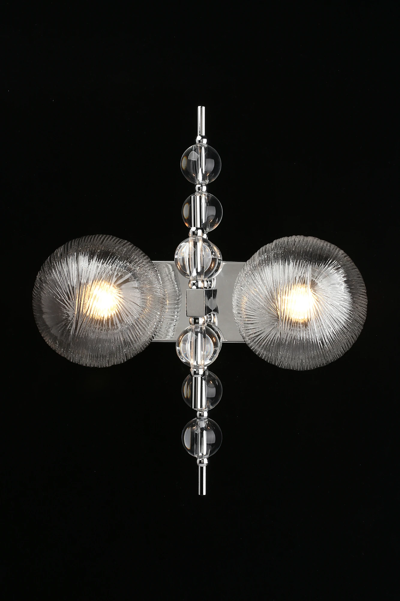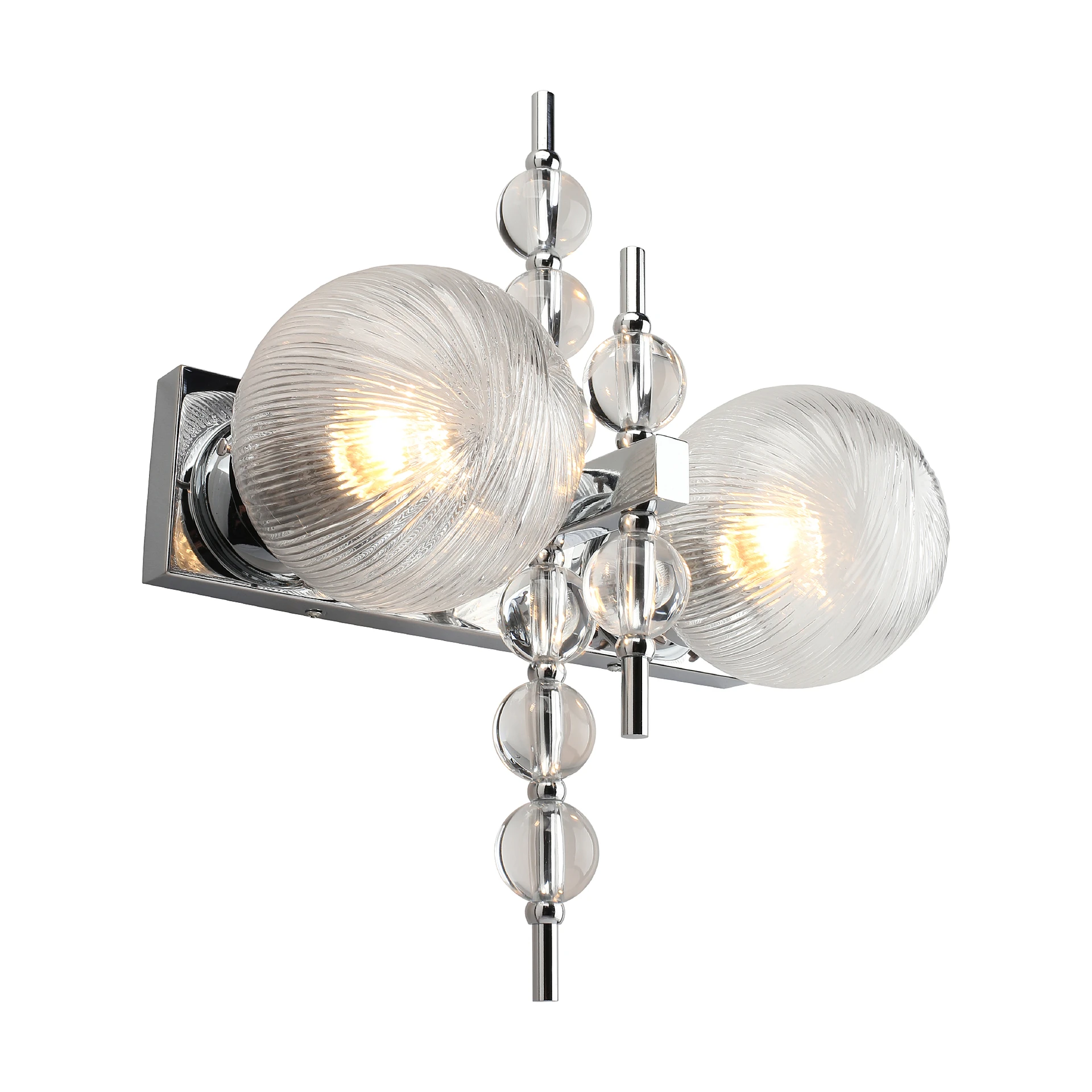 Настенное бра Aployt Melani APL.821.01.02 от Aployt — настенные бра. Материал — металл, цвет хром, плафон из стекло, цвет плафона прозрачный, форма плафона — шар. Модель имеет 2 лампы, цоколь E27, мощность 80 Вт. Крепление — планка. Габариты: высота 460 мм, ширина 370 мм. Коллекция Melani, световой поток — 840.