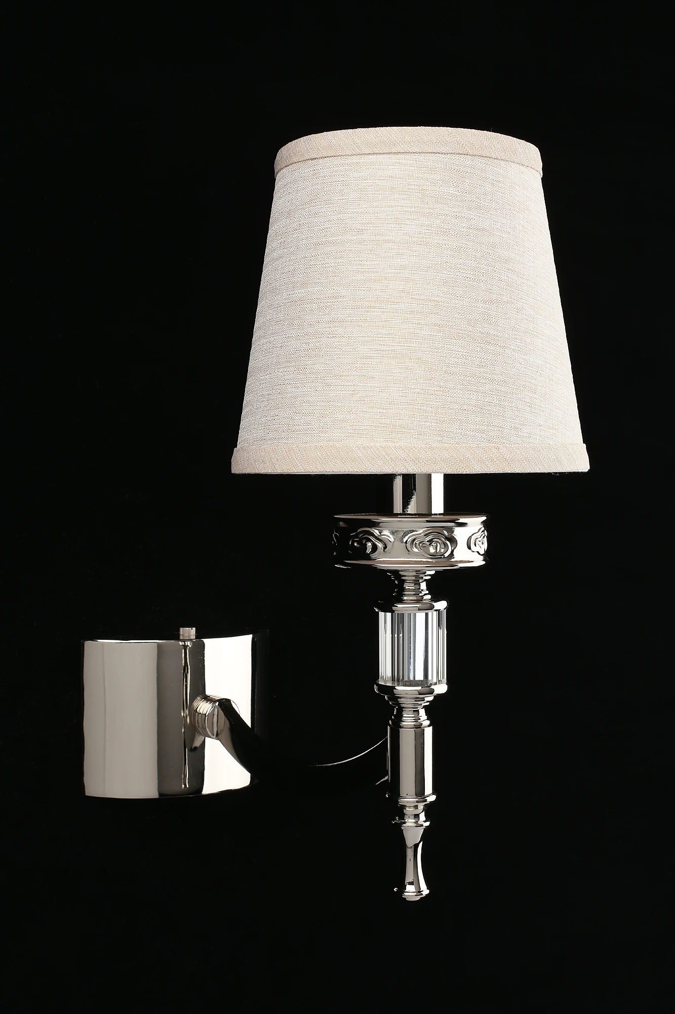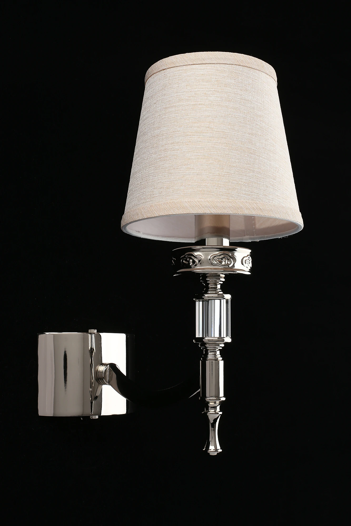 Настенное бра Aployt Mikele APL.761.01.01 от Aployt, подходит для гостиной, для спальни, в стиле классика. Материал — металл, цвет хром, плафон из ткань, цвет плафона бежевый, форма плафона — круглый абажур. Модель имеет 1 лампу, цоколь E14, мощность 40 Вт. Крепление — планка. Габариты: высота 310 мм, ширина 160 мм. Коллекция Mikele, бра — С абажурами, световой поток — 420.