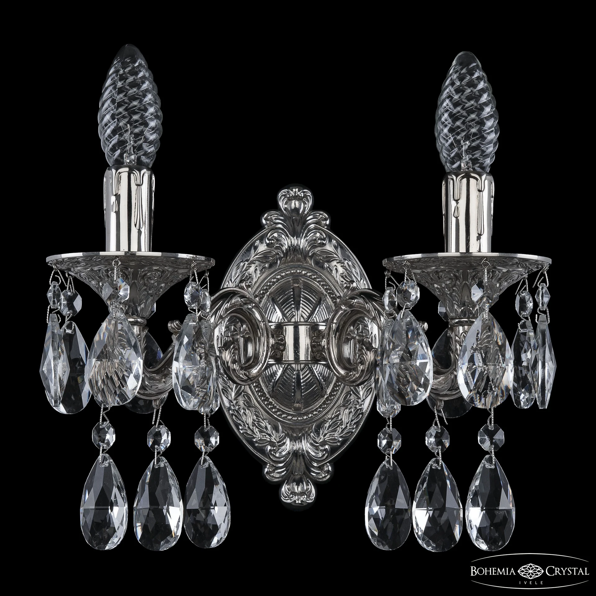 Настенное бра Bohemia 7102 7102B11/2/125 A Ni от Bohemia Ivele, подходит для гостиной, в стиле классика. Материал — латунь, цвет никель, форма плафона — свечи. Модель имеет 2 лампы, цоколь E14, мощность 40 Вт. Габариты: высота 250 мм, ширина 180 мм, глубина 260 мм. Декор — хрустальные подвески, коллекция 7102, бра — Свечи, бра — Подвески.
