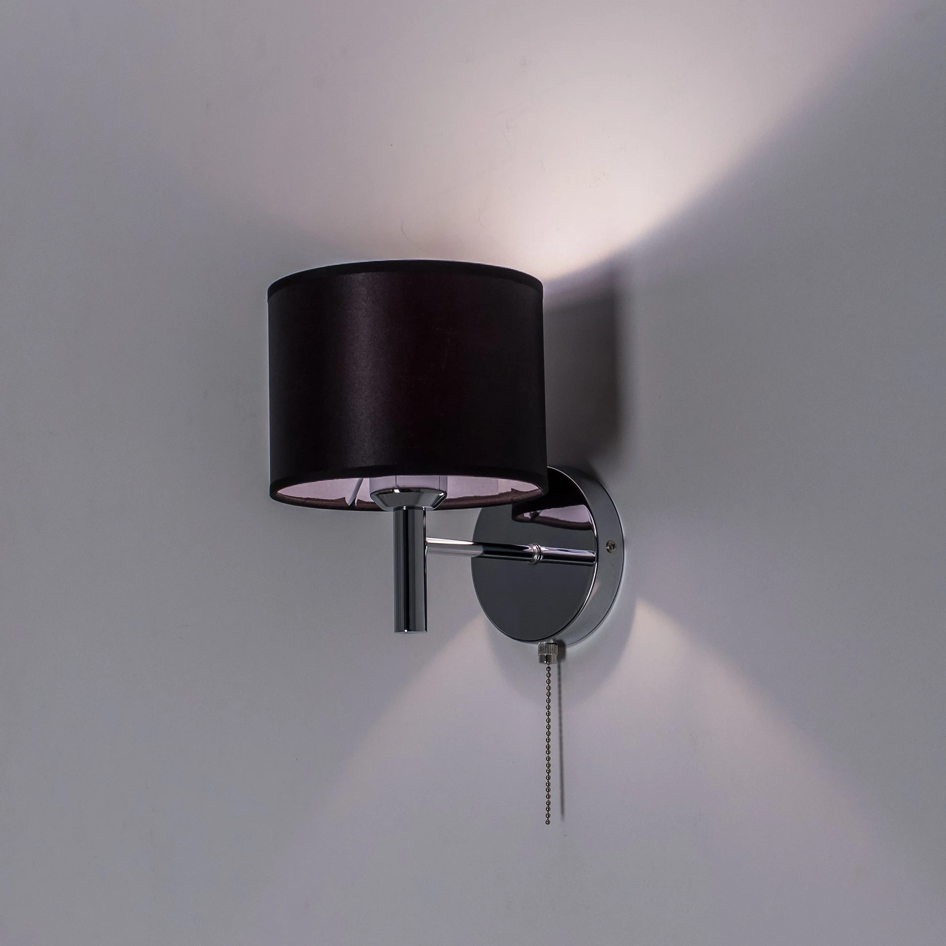Настенное бра с выключателем Citilux Аврора CL463311 от Citilux, подходит для гостиной, для спальни, в стиле хай-тек. Материал — металл, цвет хром, плафон из текстиль, цвет плафона черный, форма плафона — цилиндр. Модель имеет 1 лампу, цоколь E27, мощность 75 Вт. Сонетка (шнурок), крепление — планка. Степень защиты IP20. Габариты: высота 350 мм, ширина 160 мм. Коллекция Аврора, бра — С абажурами, бра — С выключателем (не ставить).