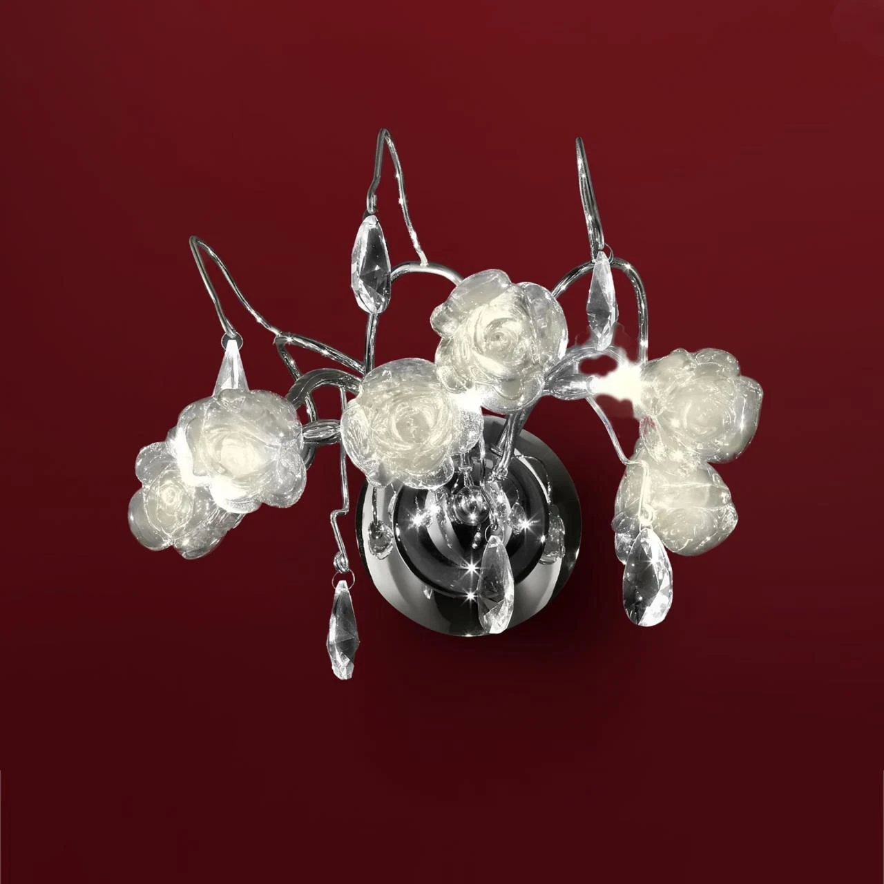 Бра с цветочками Rosa EL325W03.1 Citilux от Citilux, подходит для гостиной, в стиле хрусталь. Материал — металл, цвет хром, плафон из стекла, цвет плафона белый. Модель имеет 3 лампы, цоколь G4, мощность 80 Вт. Поддержка диммера, крепление — планка. Степень защиты IP20. Габариты: высота 270 мм, ширина 300 мм. Декор — хрустальные подвески, коллекция Rosa, бра — Подвески, бра — Цветочки.