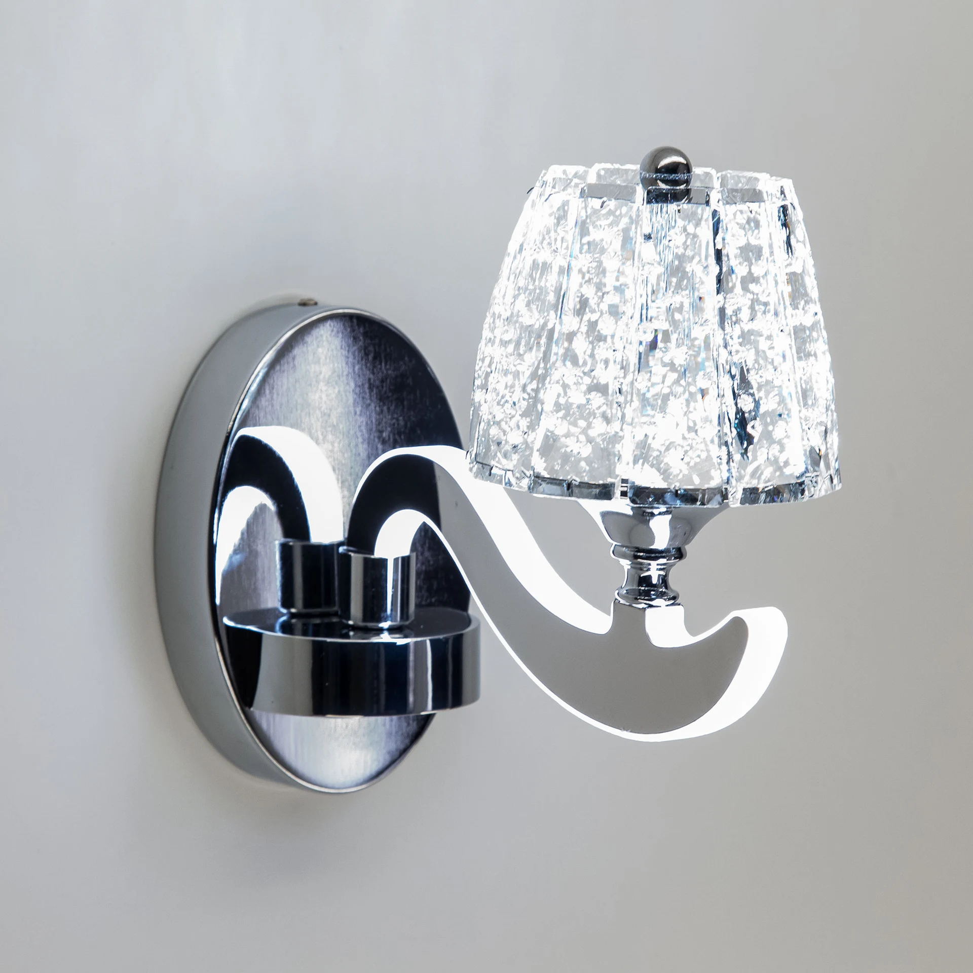 Настенное бра Citilux Montserrat EL338W1 от Citilux, подходит для гостиной, в стиле современный. Материал — металл, цвет хром, плафон из хрусталь, цвет плафона прозрачный, форма плафона — конус. Модель имеет 1 лампу, цоколь LED, мощность 11 Вт. Цветовая температура 2700-4500, крепление — планка. Степень защиты IP20. Габариты: высота 250 мм, ширина 120 мм. Коллекция Montserrat, световой поток — 1000.