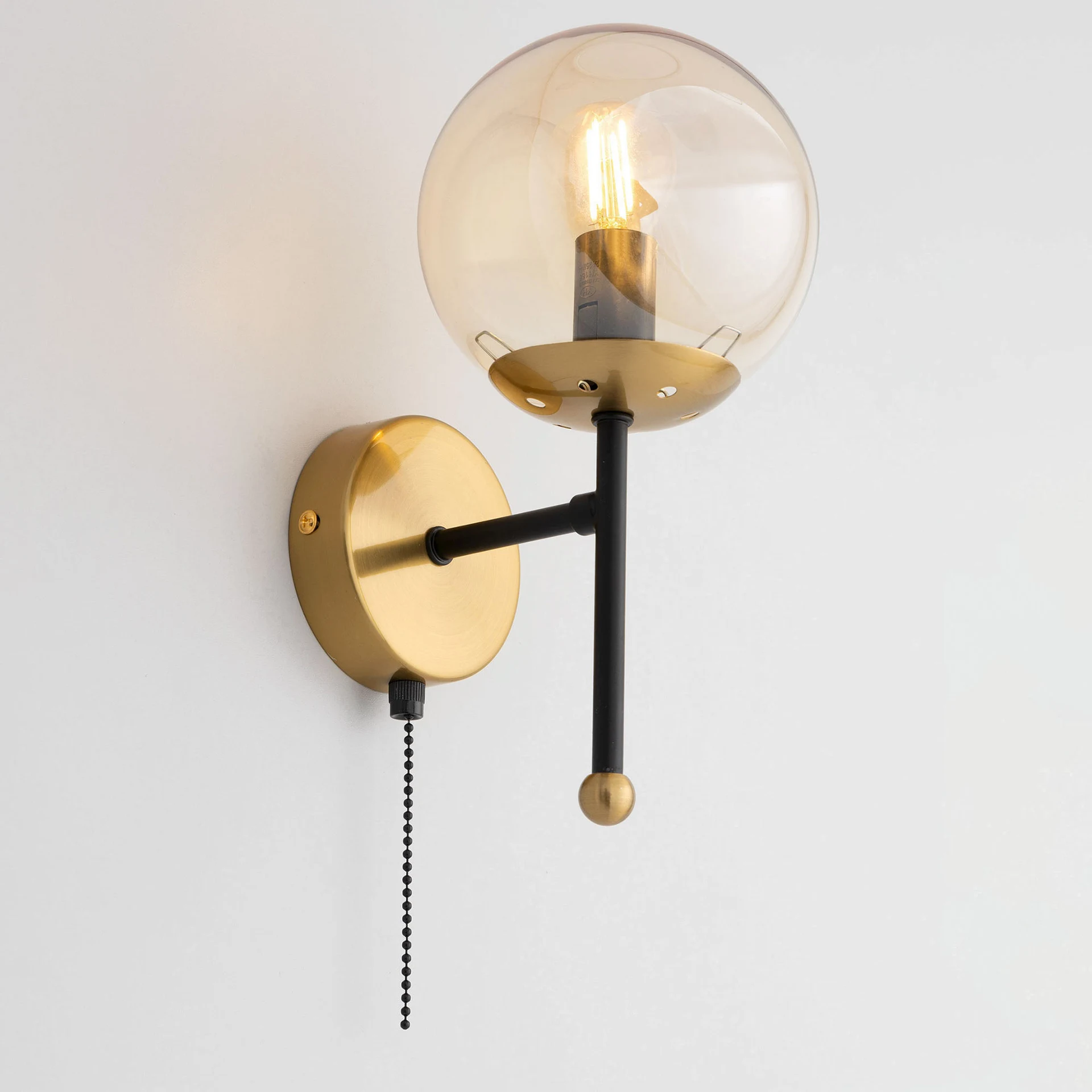 Настенное бра Citilux Памела CL144315 от Citilux — настенные бра. Материал — металл, цвет черный, плафон из стекла, цвет плафона шампань, форма плафона — шар. Модель имеет 1 лампу, цоколь E14, мощность 40 Вт, площадь освещения до 1,5. Сонетка (шнурок). Степень защиты IP20. Габариты: высота 270 мм, ширина 120 мм, глубина 150 мм. Коллекция Памела, световой поток — 400.