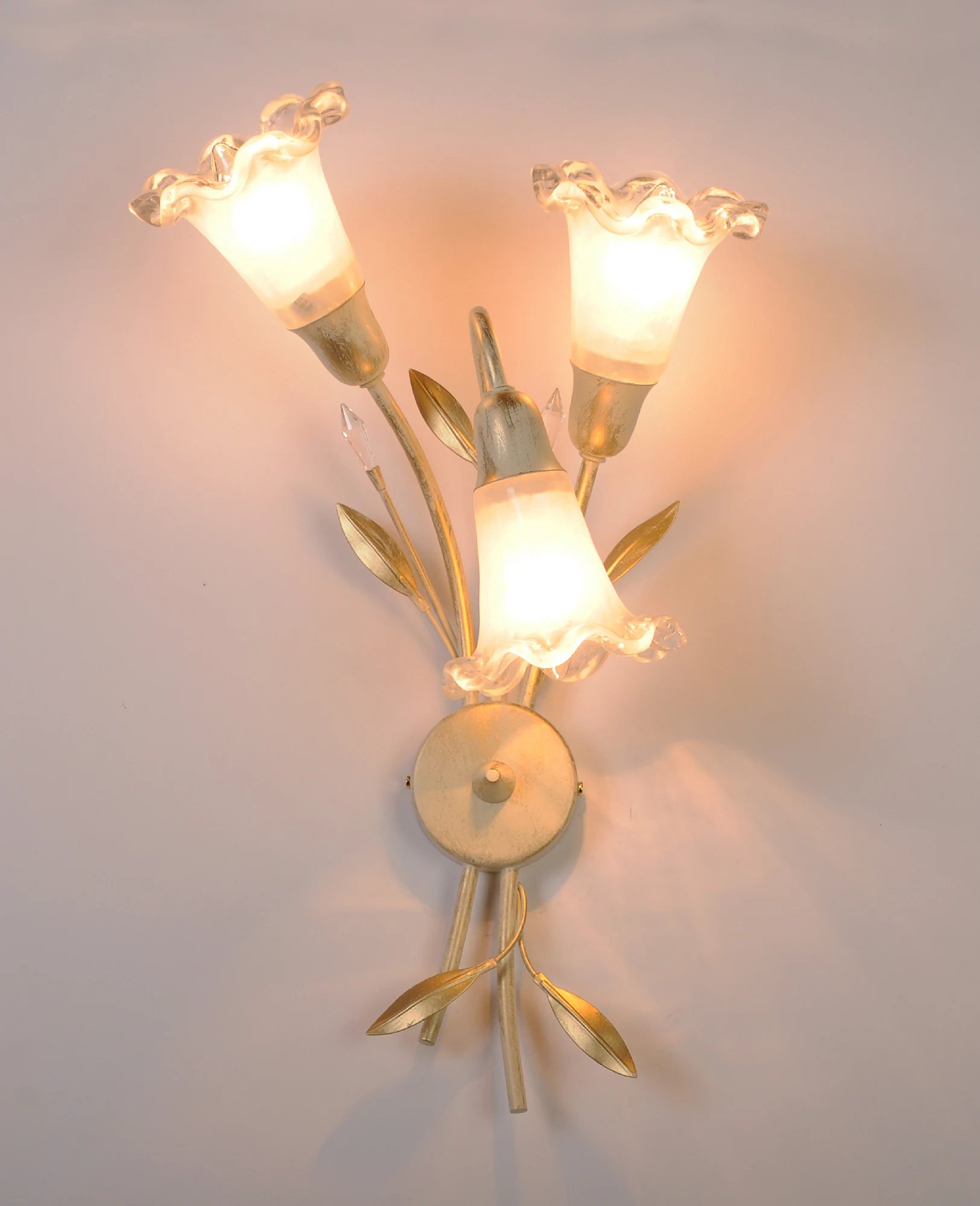 Настенное бра Doge Luce 114 114AP3XZ-370 от Doge Luce, подходит для гостиной, в стиле современный, флористика. Материал — металл, цвет золото, плафон из стекла, цвет плафона прозрачный, форма плафона — лилия. Модель имеет 3 лампы, цоколь E14, мощность 40 Вт, площадь освещения до 9 кв. м. Крепление — планка. Степень защиты IP20. Габариты: высота 470 мм, ширина 300 мм. Декор — лепестки, ветки, коллекция 114.