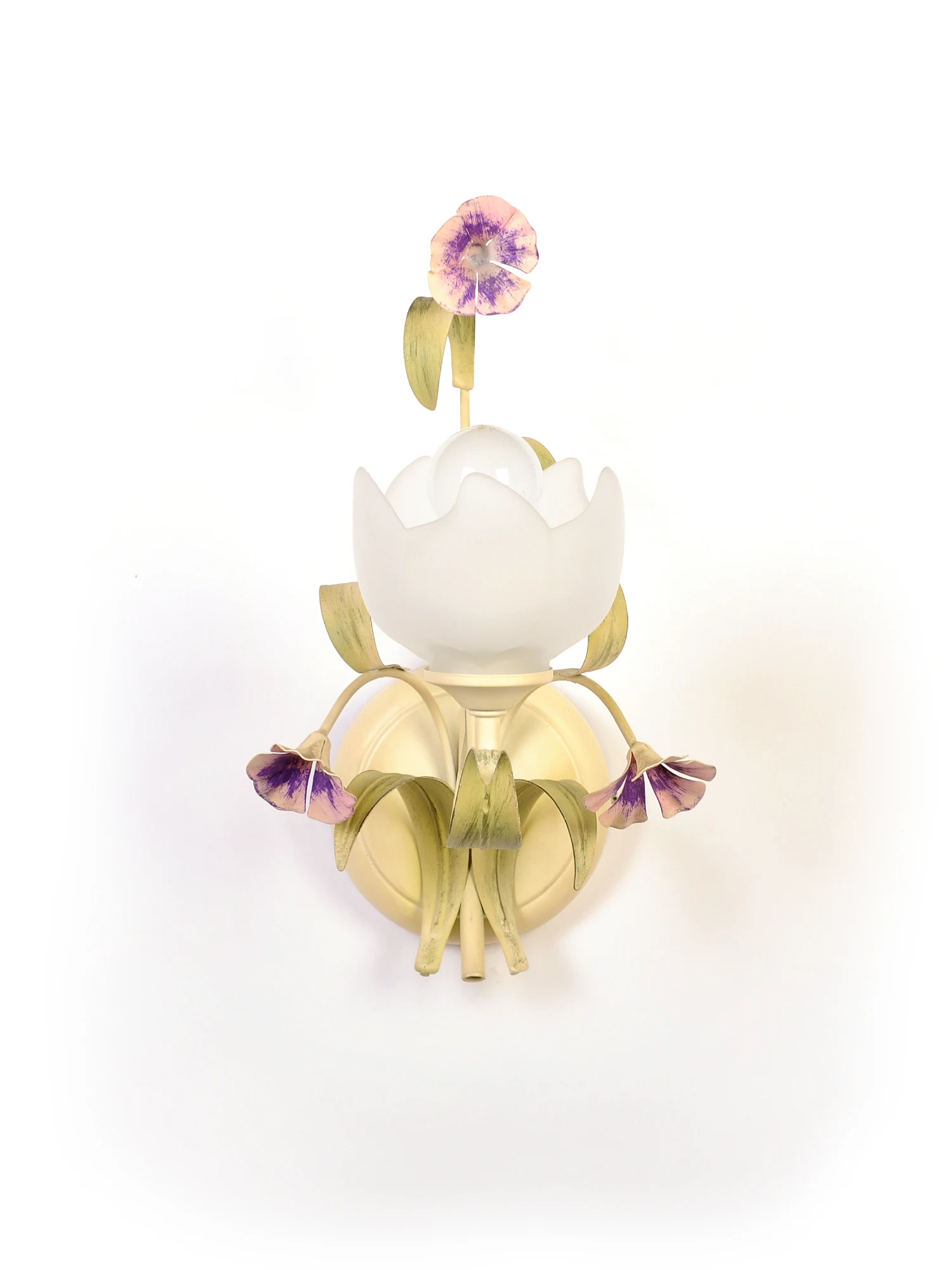 Настенное бра Doge Luce 4349/A1 от Doge Luce — настенные бра. Материал — металл, цвет кремовый, плафон из стекла, цвет плафона белый матовый, форма плафона — цветок. Модель имеет 1 лампу, цоколь E14, мощность 40 Вт, площадь освещения до 3 кв. м. Крепление — планка. Степень защиты IP20. Габариты: высота 310 мм, ширина 190 мм. Декор — лепестки, ветки.