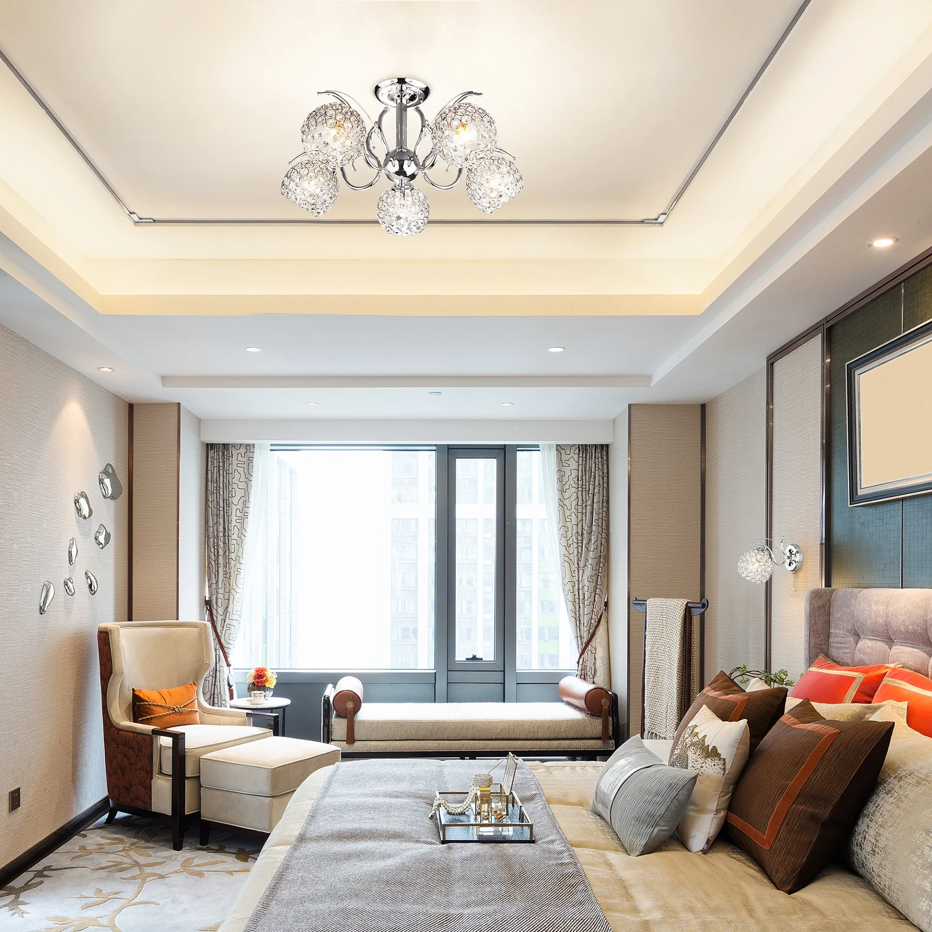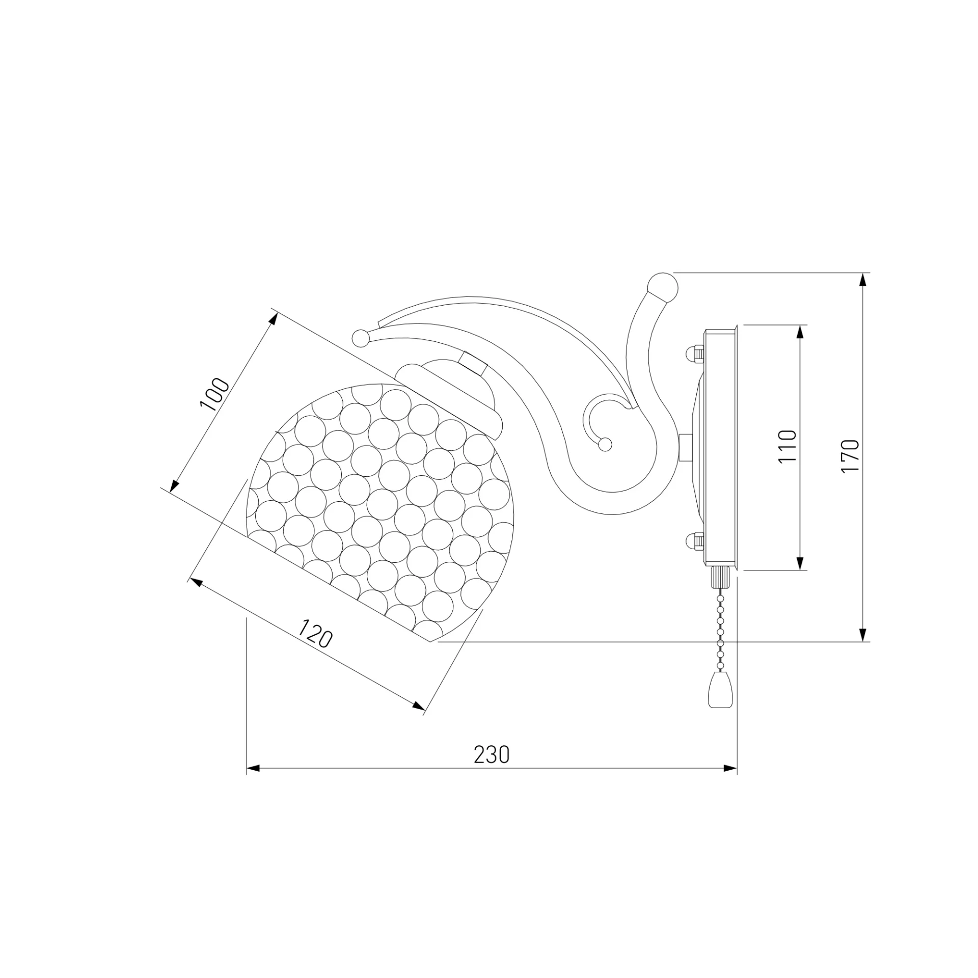 Настенное бра Eurosvet Mirage 7777/1 хром от Eurosvet, подходит для гостиной, в стиле современный. Материал — металл, цвет хром, плафон из стекла, цвет плафона хром, форма плафона — с декором. Модель имеет 1 лампу, цоколь E27, мощность 60 Вт. Сонетка (шнурок). Габариты: высота 170 мм, ширина 120 мм. Декор — хрустальные подвески, коллекция Mirage, бра — С плафонами, бра — Подвески.