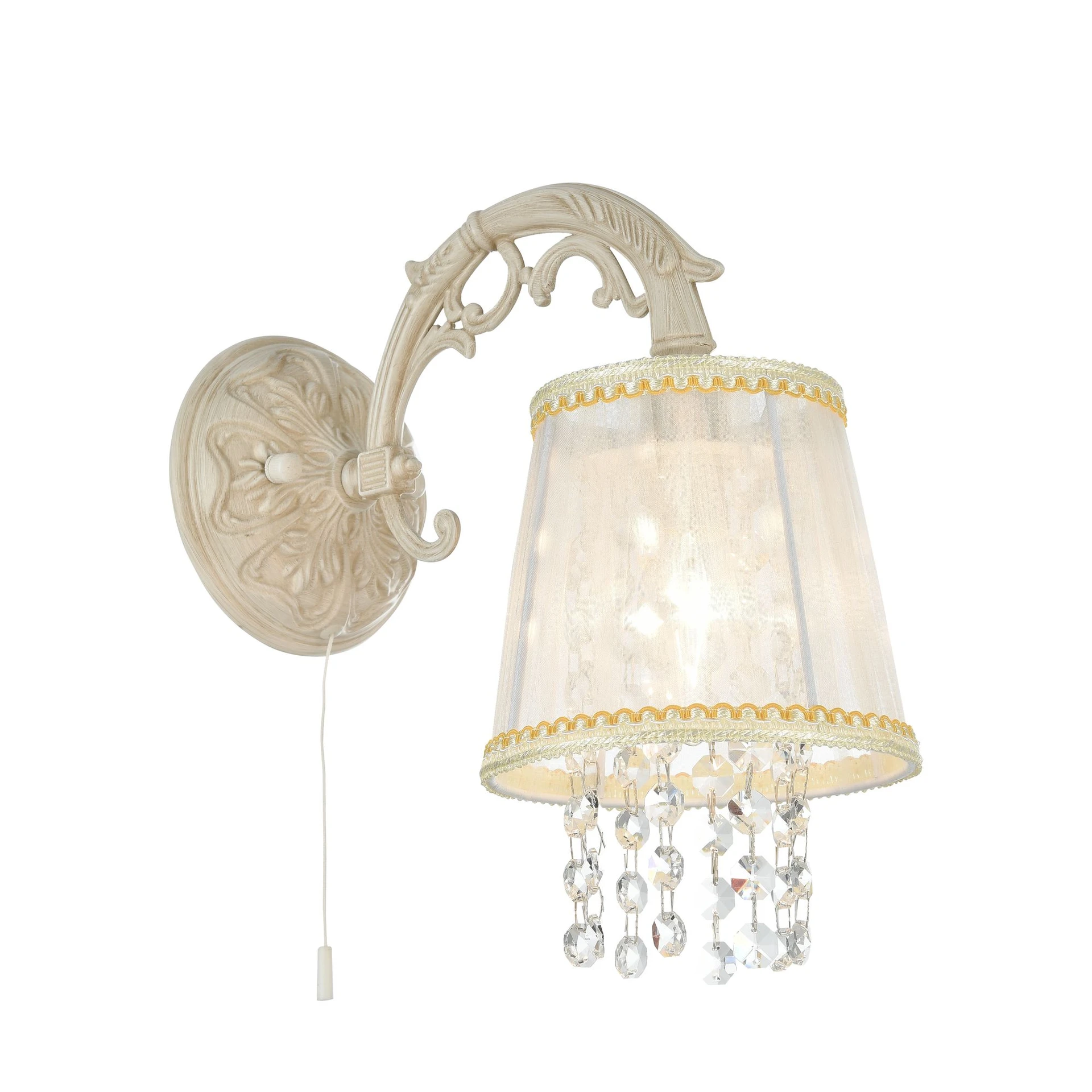 Настенное бра Freya Omela FR2220WL-01W от Freya, подходит для спальни, в стиле прованс. Материал — металл, цвет бежевый, форма плафона — круглый абажур. Модель имеет 1 лампу, цоколь E14, мощность 40 Вт. С выключателем, сонетка (шнурок). Габариты: высота 270 мм, ширина 170 мм. Декор — хрустальные подвески, коллекция Omela, бра — С абажурами, бра — Подвески.