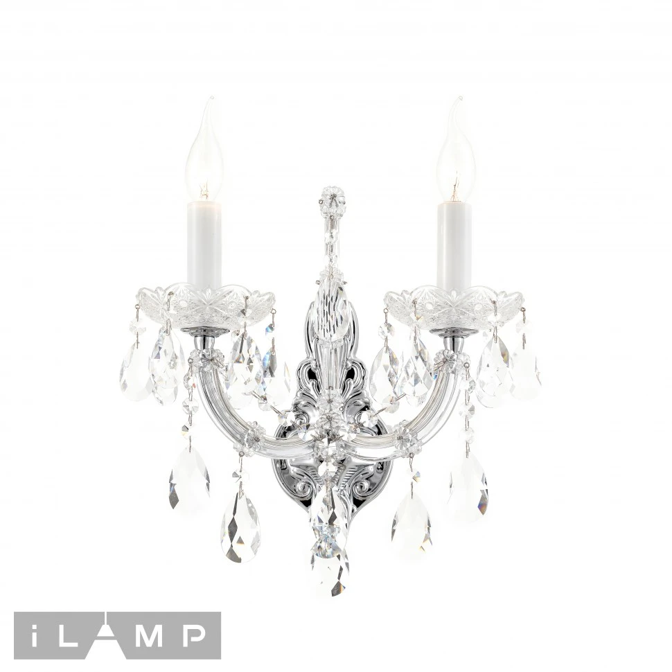 Настенное бра iLamp Diamond W6071-2 CR+CL от Ilamp — настенные бра. Материал — металл, цвет хром, форма плафона — свечи. Модель — цоколь E14, мощность 80 Вт. Габариты: ширина 300 мм, диаметр 240 мм. Декор — хрустальные подвески, коллекция Diamond.