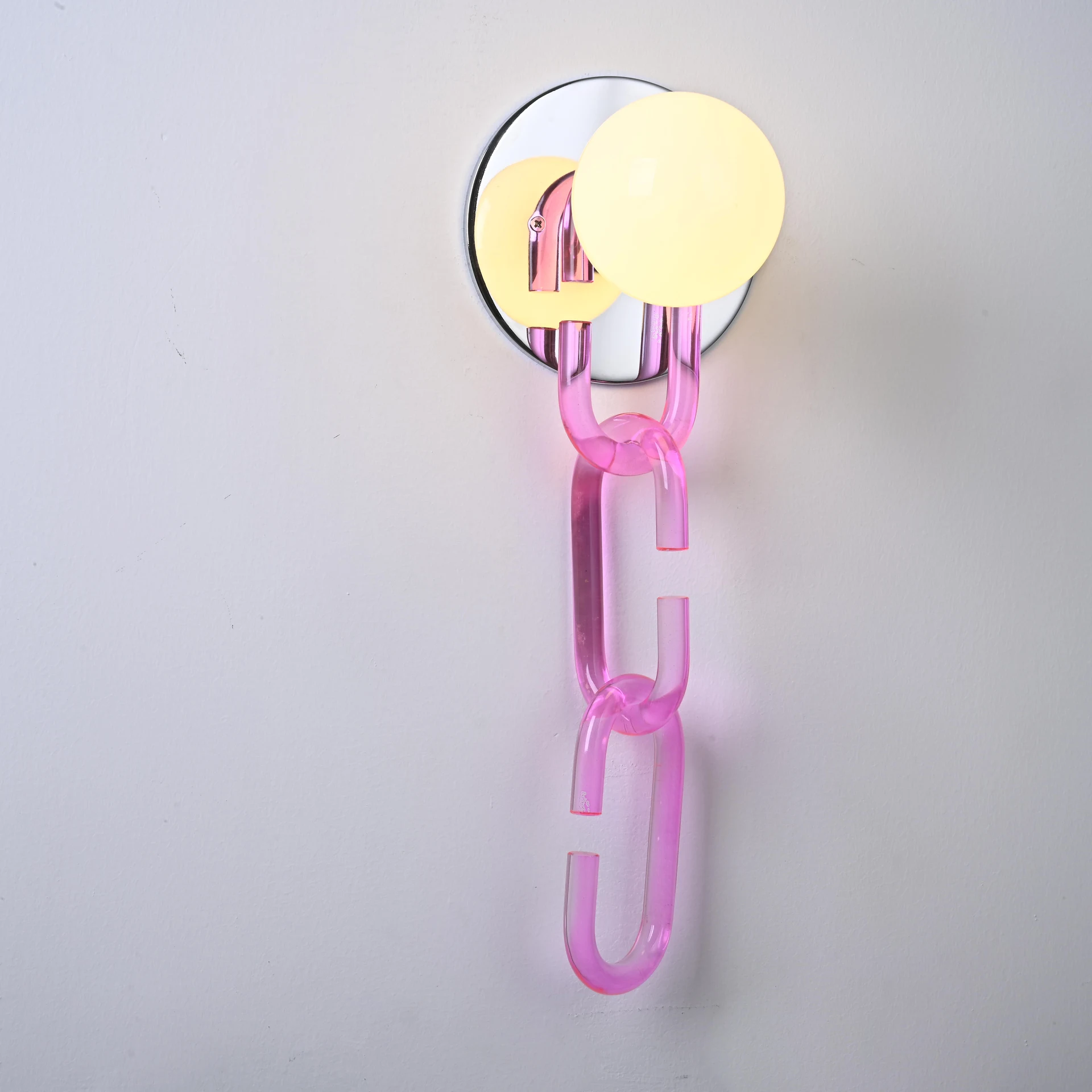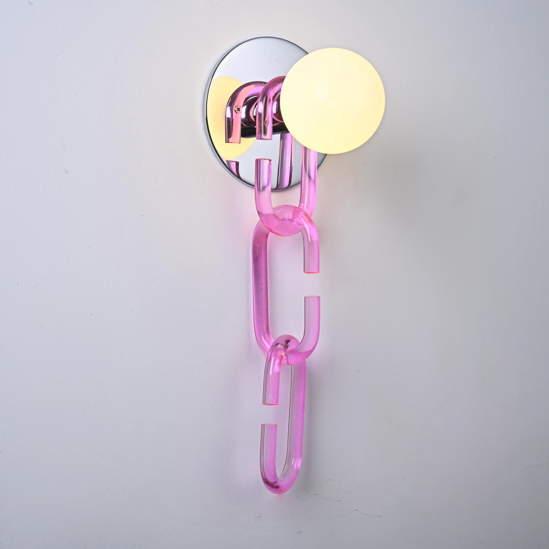 Настенное бра ImperiumLoft Chain-Wall01 178090-26 от ImperiumLoft, подходит для гостиной, в стиле современный. Материал — металл, цвет розовый, плафон из стекла, цвет плафона белый. Модель имеет 1 лампу, цоколь E27, мощность 60 Вт. Степень защиты IP20. Габариты: высота 420 мм, ширина 150 мм, диаметр 150 мм. Коллекция Chain-Wall01, бра — Ретро-лампы, бра — Пестрые.