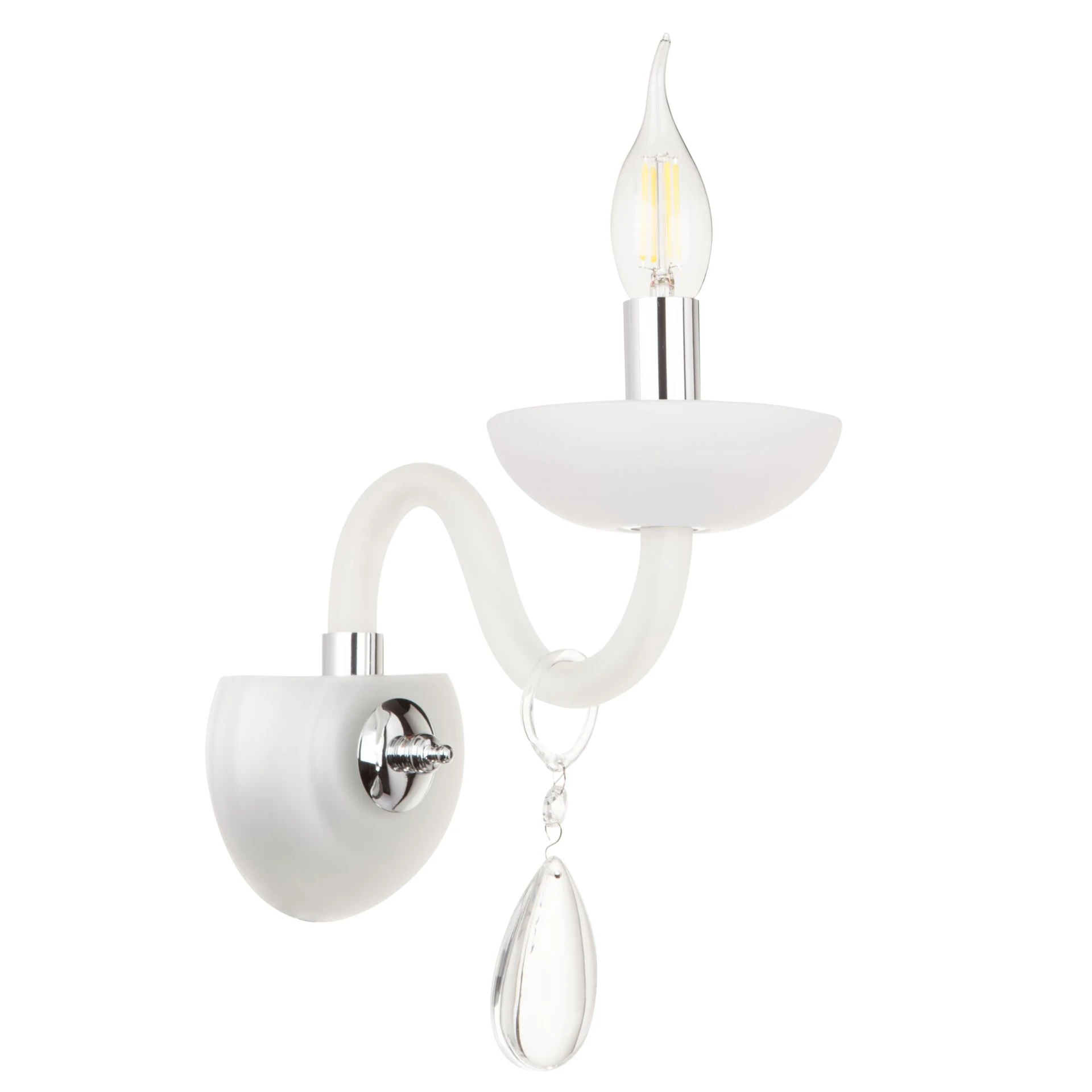 Настенное бра Maytoni Cecilia DIA011WL-01W от Maytoni, подходит для гостиной, в стиле современный, классика, хрусталь. Материал — металл, цвет белый, форма плафона — свечи. Модель имеет 1 лампу, цоколь E14, мощность 40 Вт. Степень защиты IP20. Габариты: высота 310 мм, ширина 120 мм. Декор — хрустальные подвески, коллекция Cecilia, бра — Стеклянные, бра — Подвески.