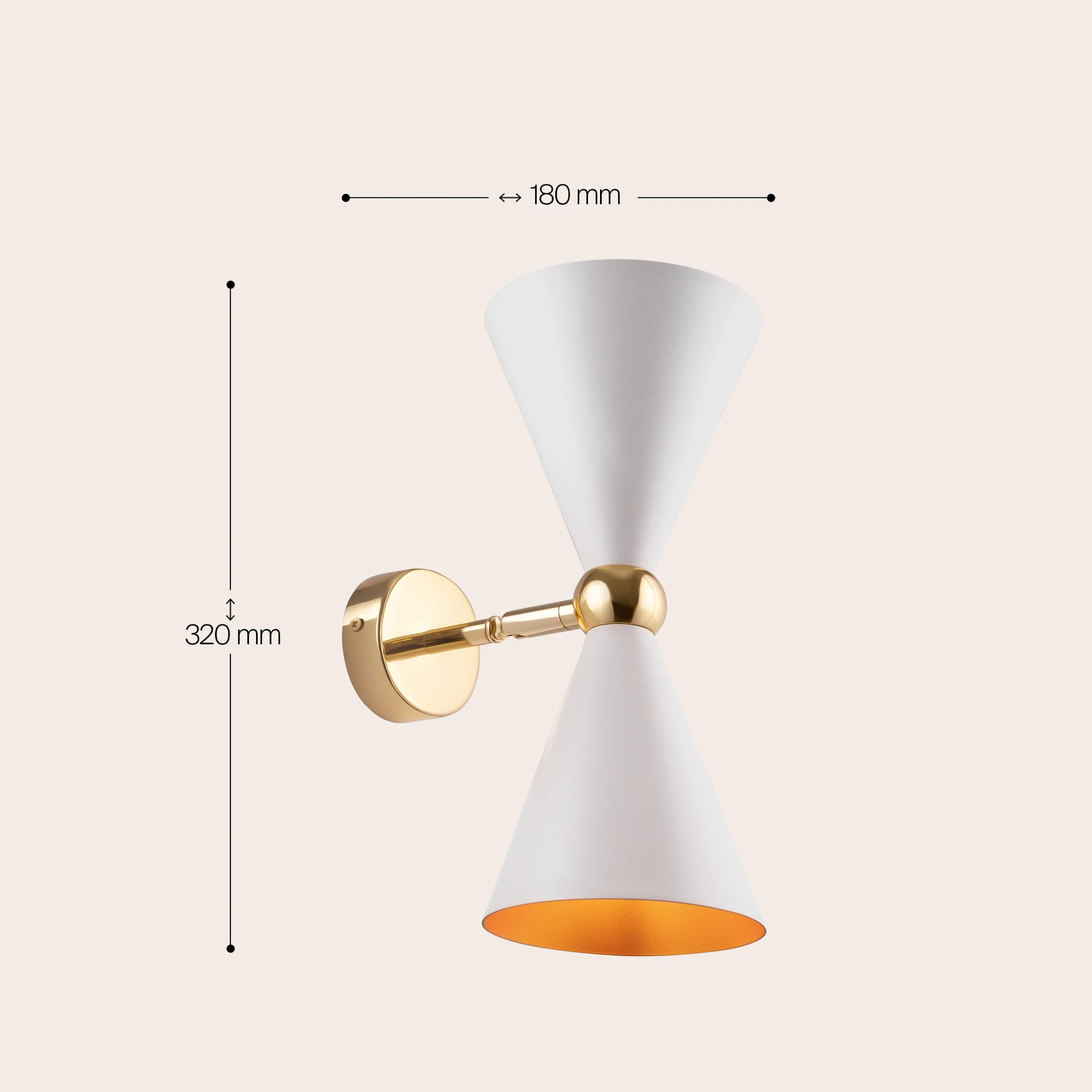 Настенное бра Maytoni Vesper MOD108WL-02WG от Maytoni, подходит для гостиной, в стиле современный. Материал — металл, цвет белый, форма плафона — конус. Модель имеет 2 лампы, цоколь E14, мощность 40 Вт. Степень защиты IP20. Габариты: высота 320 мм, ширина 120 мм. Коллекция Vesper.