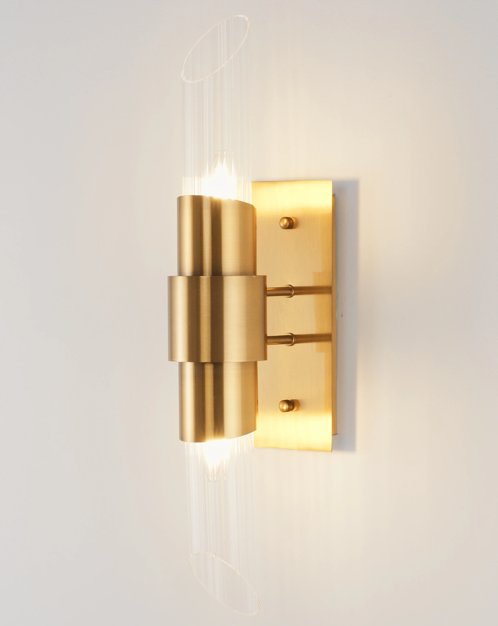 Настенное бра Moderli Strict V10271-2W от Moderli, подходит для гостиной, в стиле современный. Материал — металл, цвет латунь, плафон из стекла, цвет плафона прозрачный, форма плафона — цилиндр. Модель имеет 2 лампы, цоколь E14, мощность 80W. Крепление — планка. Габариты: высота 620 мм, ширина 200 мм, глубина 110 мм. Коллекция Strict, бра — С плафонами, бра — Вытянутые (хар-ка длинные).