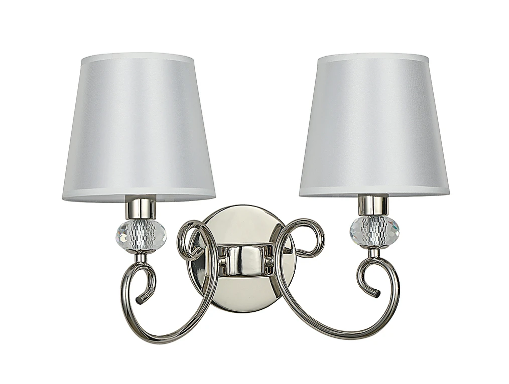 Настенное бра Newport Marta 1202/A nickel от Newport — настенные бра. Материал — железо, цвет никель, цвет плафона белый, форма плафона — абажуры. Модель имеет 2 лампы, цоколь E14, мощность 40 Вт. Габариты: высота 290 мм, ширина 420 мм, глубина 230 мм. Коллекция Marta.