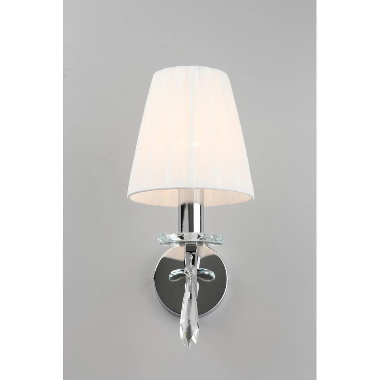 Настенное бра Omnilux Breguzzo OML-57701-01 от Omnilux, подходит для гостиной, для спальни, в стиле современный. Материал — металл, цвет хром, плафон из ткань, цвет плафона белый, форма плафона — круглый абажур. Модель имеет 1 лампу, цоколь E14, мощность 40 Вт. Крепление — планка. Степень защиты IP20. Габариты: высота 290 мм, ширина 150 мм. Декор — хрустальные подвески, коллекция Breguzzo, световой поток — 420.