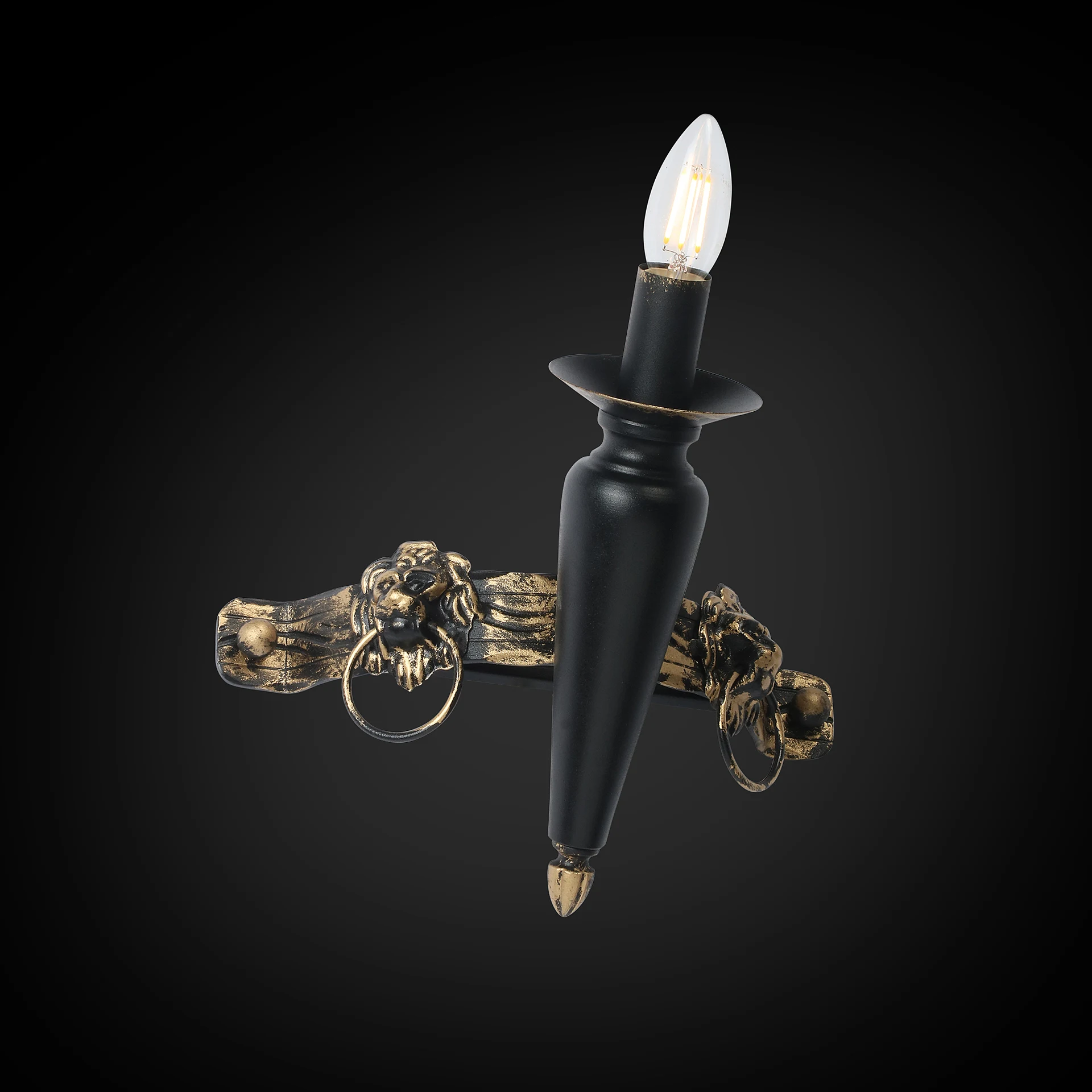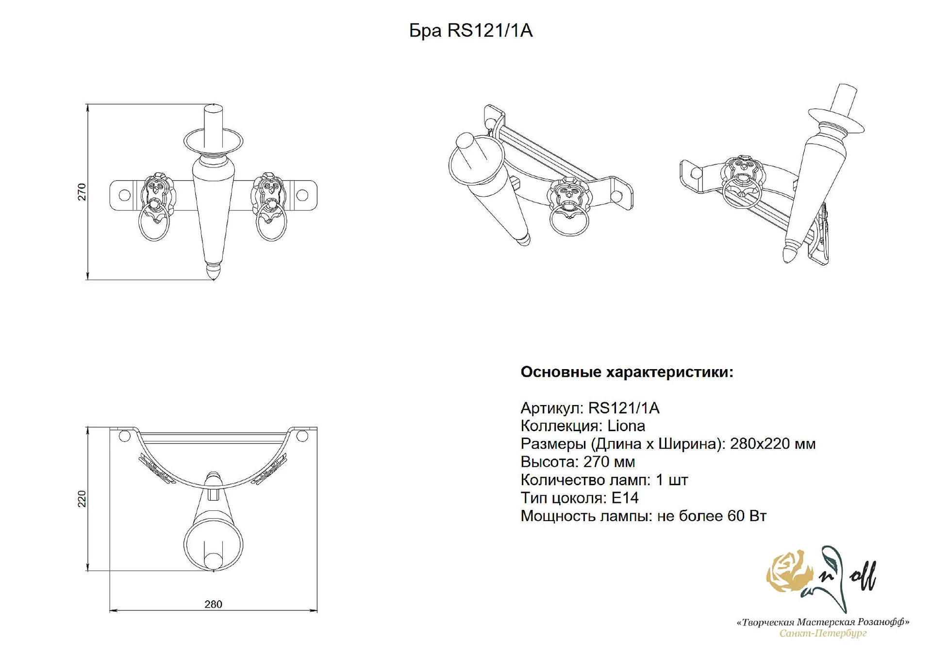 Настенное бра Розанофф Liona RS121/1A от Розанофф, подходит для гостиной, в стиле кованые, кантри. Материал — металл, цвет черный, форма плафона — свечи. Модель имеет 1 лампу, цоколь E14, мощность 60 Вт. Крепление — планка. Габариты: высота 270 мм, ширина 280 мм, глубина 220 мм. Декор — животные, коллекция Liona.