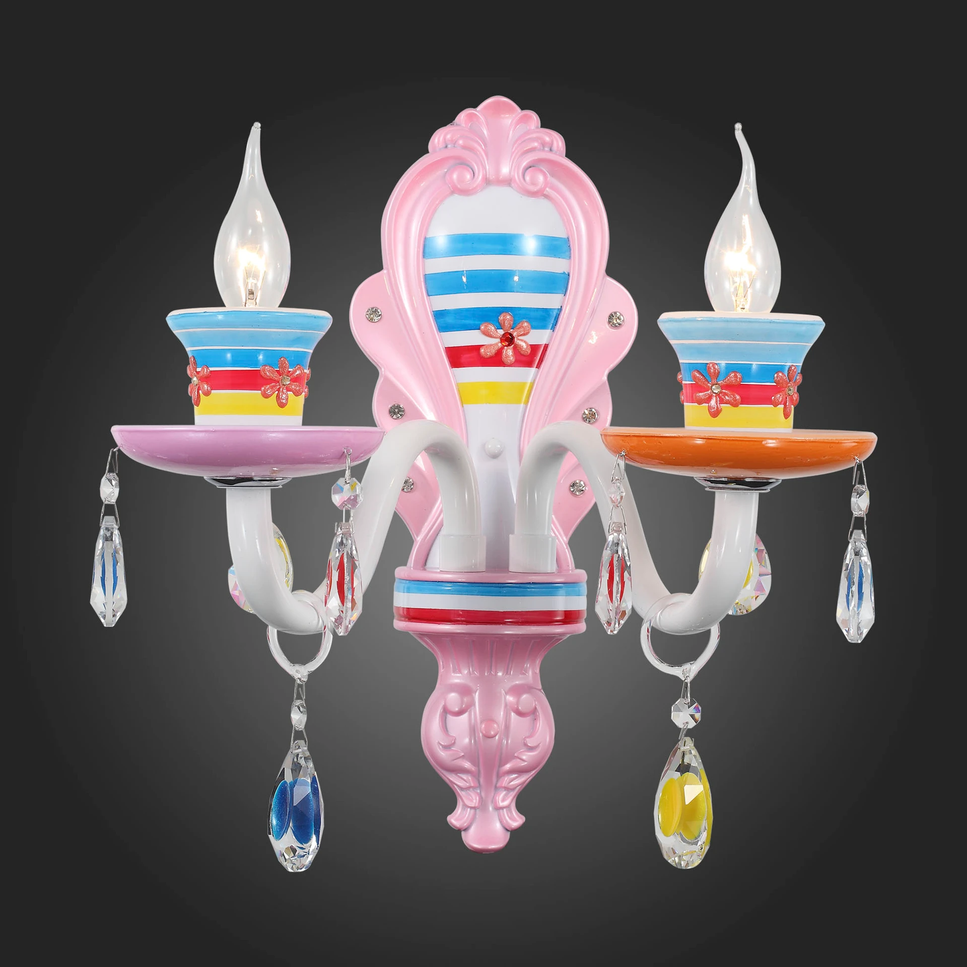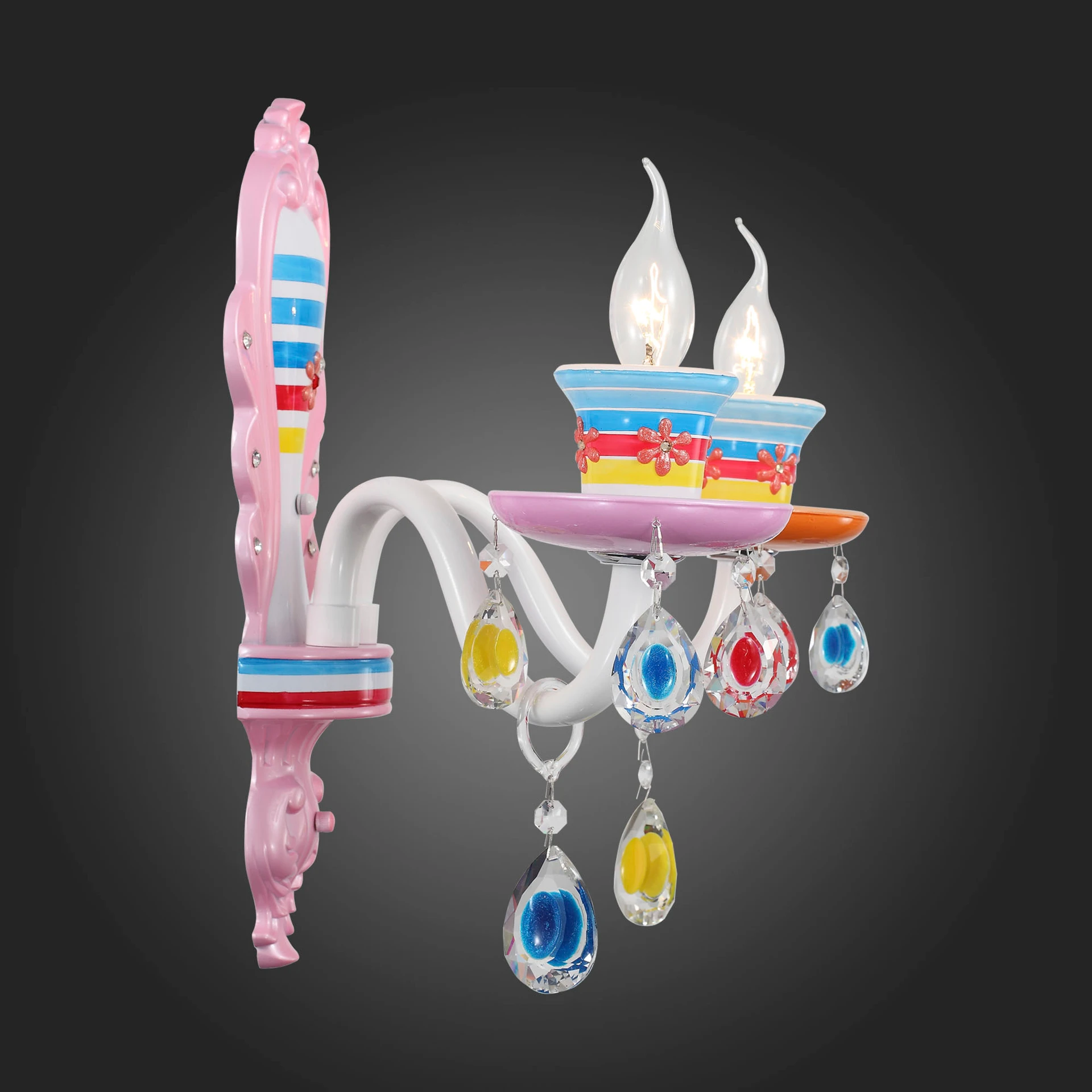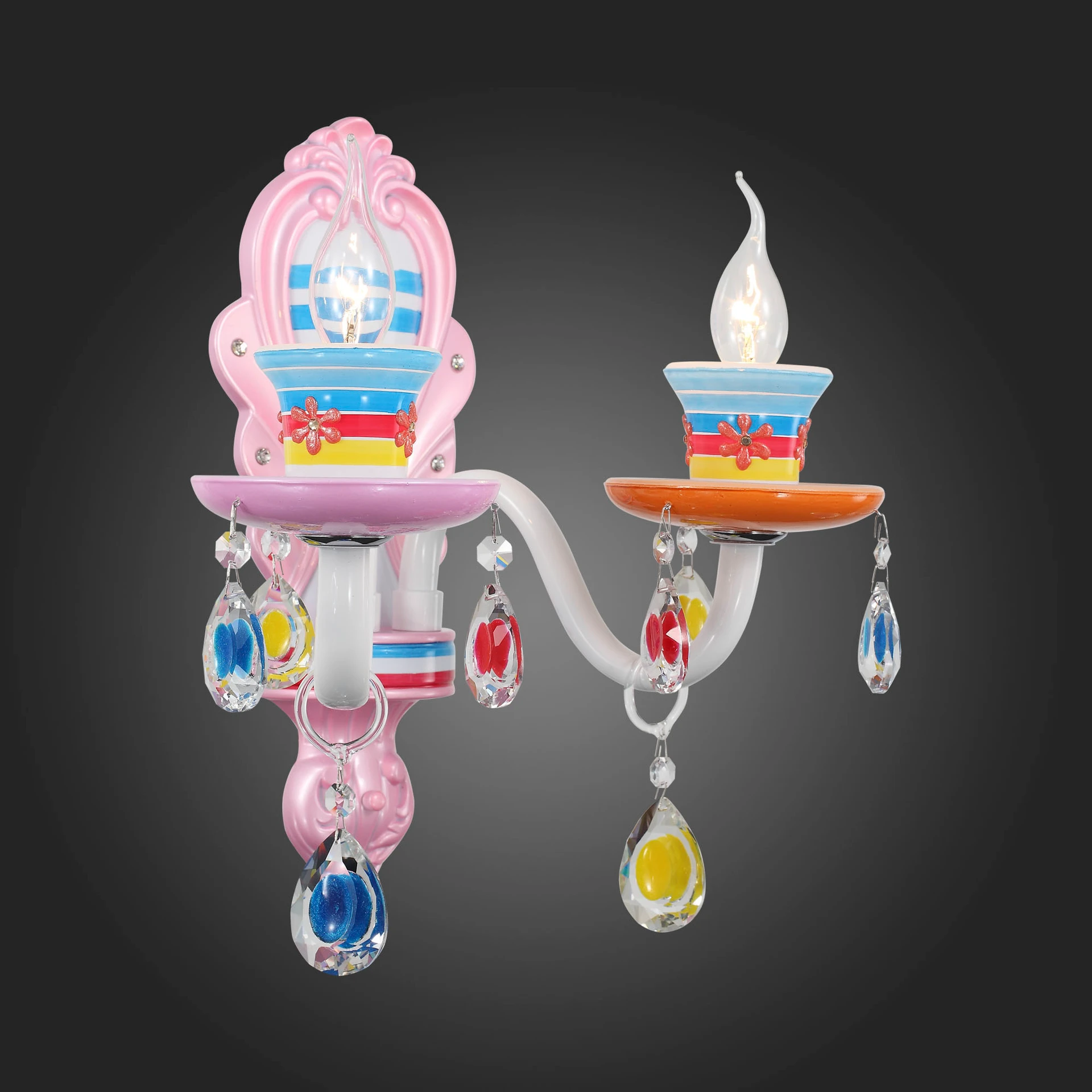 Разноцветный настенный светильник Ornato SL673.781.02 ST Luce от ST Luce, подходит для детской, в стиле современный. Материал — металл, цвет разноцветный, плафон из стекла, цвет плафона разноцветный. Модель имеет 2 лампы, цоколь E14, мощность 80W. Габариты: высота 1200 мм, ширина 350 мм. Декор — хрустальные подвески, бра — Свечи, бра — Разноцветные.