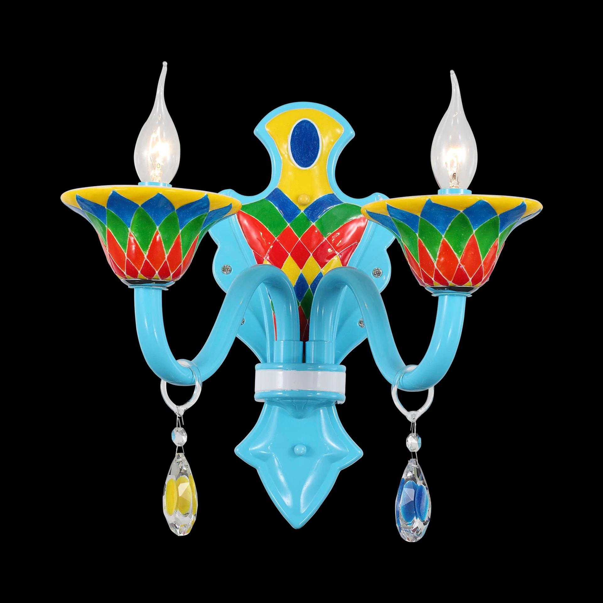 Разноцветный настенный светильник Ornato SL674.781.02 ST Luce от ST Luce, подходит для детской, в стиле современный. Материал — металл, цвет разноцветный, плафон из стекла, цвет плафона разноцветный, форма плафона — пестрые. Модель имеет 2 лампы, цоколь E14, мощность 80W, площадь освещения до 4 кв. м. Крепление — планка. Габариты: высота 320 мм, ширина 350 мм, глубина 240 мм. Декор — хрустальные подвески, коллекция Ornato.