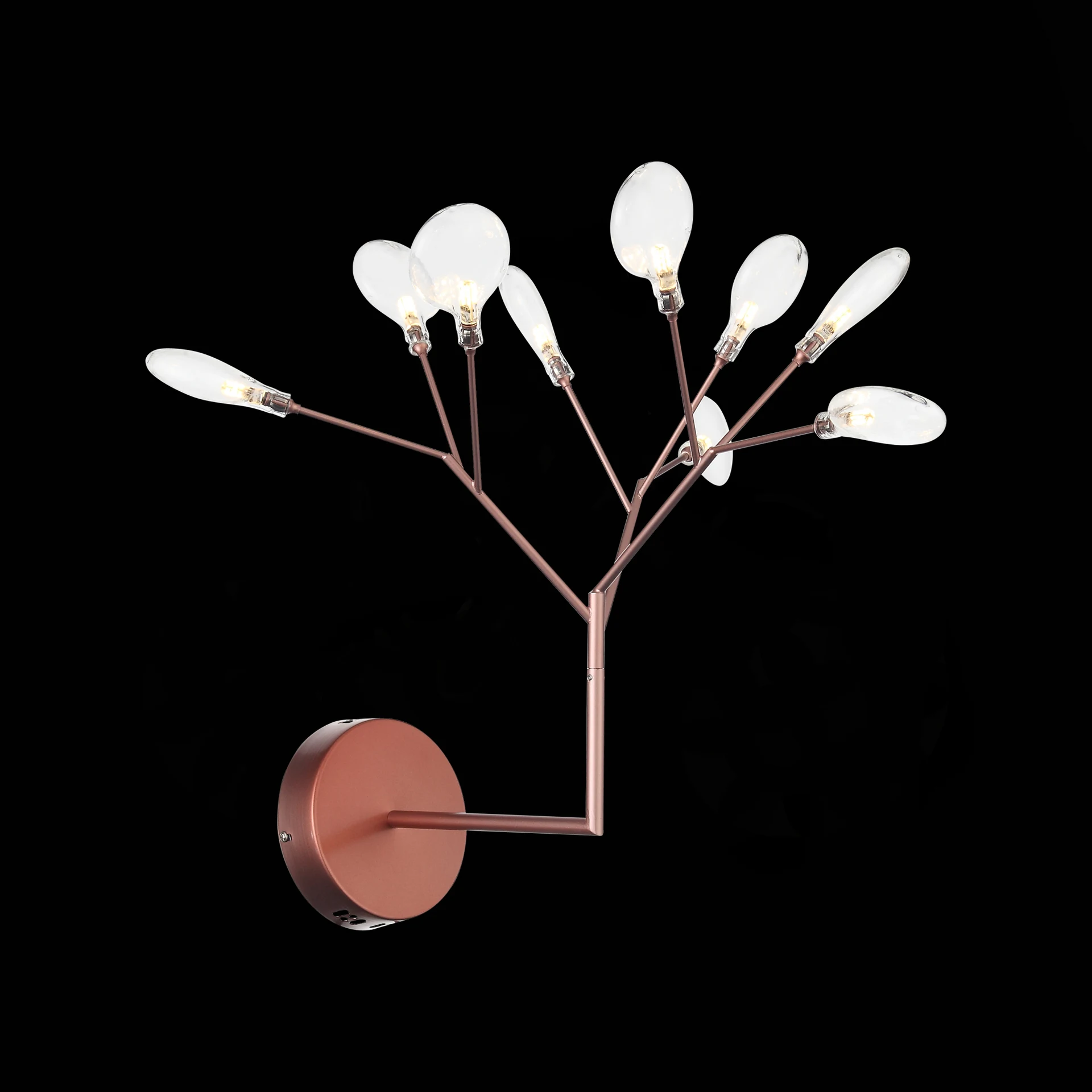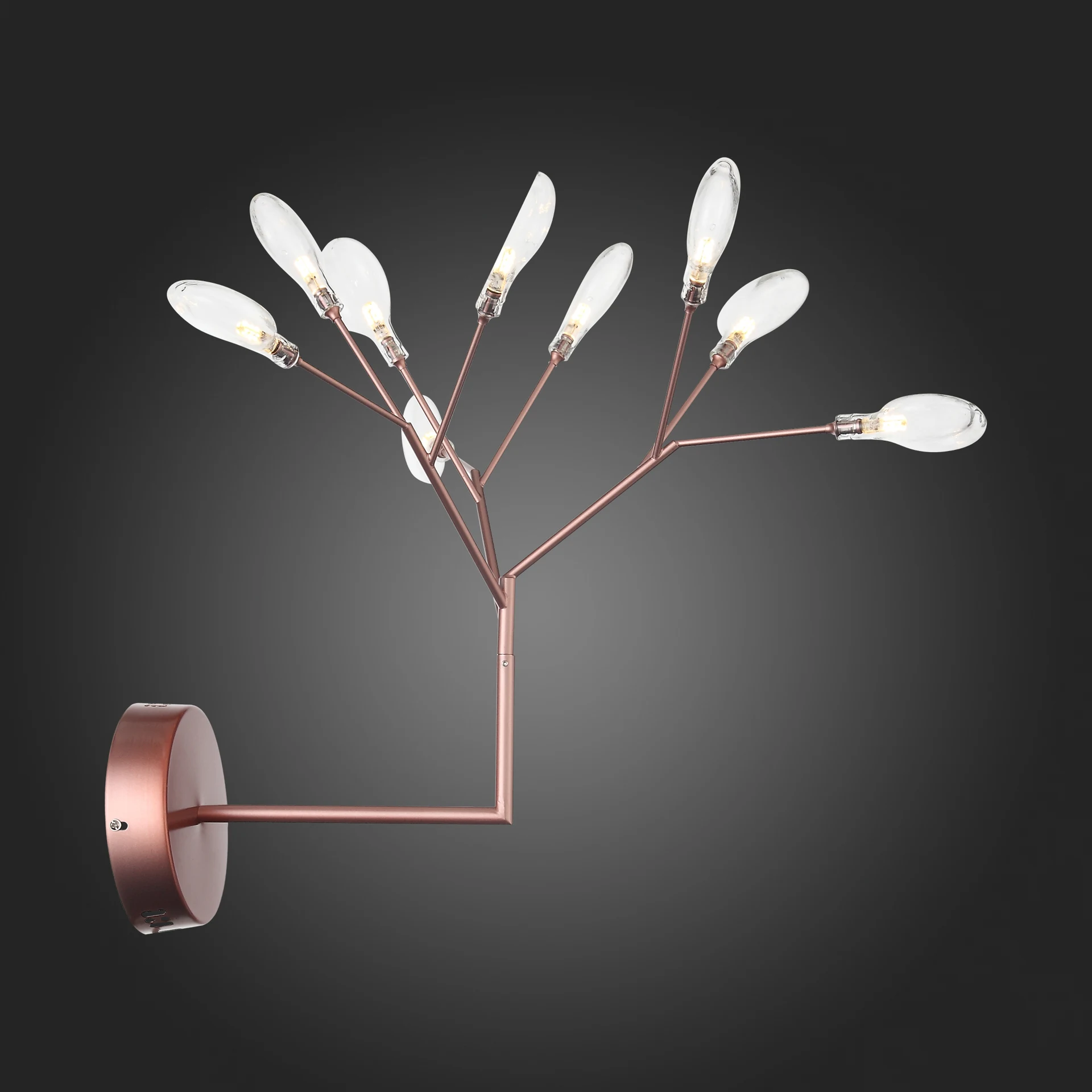 Настенное бра ST Luce Riccardo SL411.301.09 от ST Luce, подходит для гостиной, в стиле современный. Материал — металл, цвет розовое золото, плафон из стекла, цвет плафона прозрачный, форма плафона — плоские. Модель имеет 9 ламп, цоколь G4, мощность 14 Вт, площадь освещения до 5 кв. м. Крепление — планка. Степень защиты IP20. Габариты: высота 380 мм, ширина 420 мм. Декор — лепестки, ветки, коллекция Riccardo.