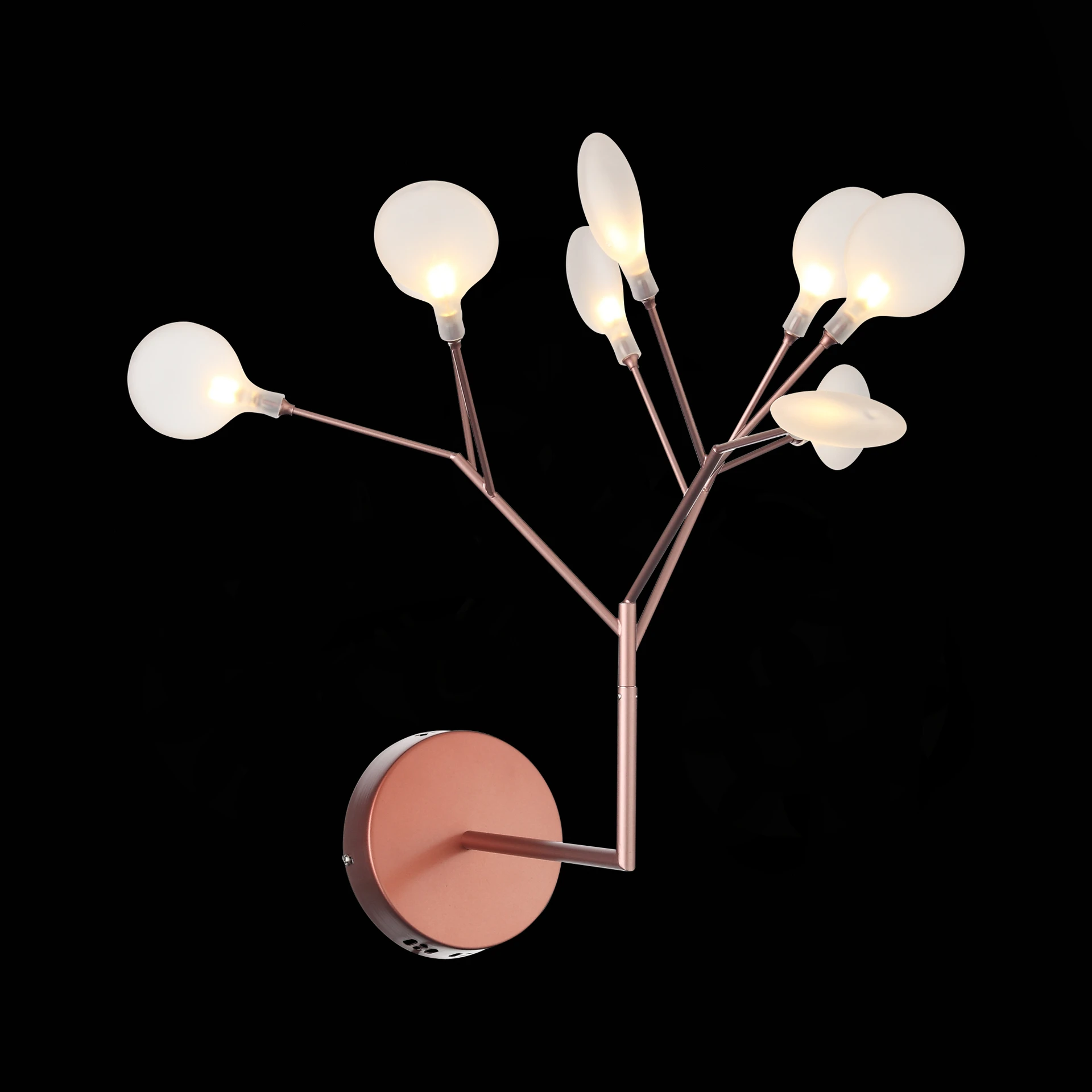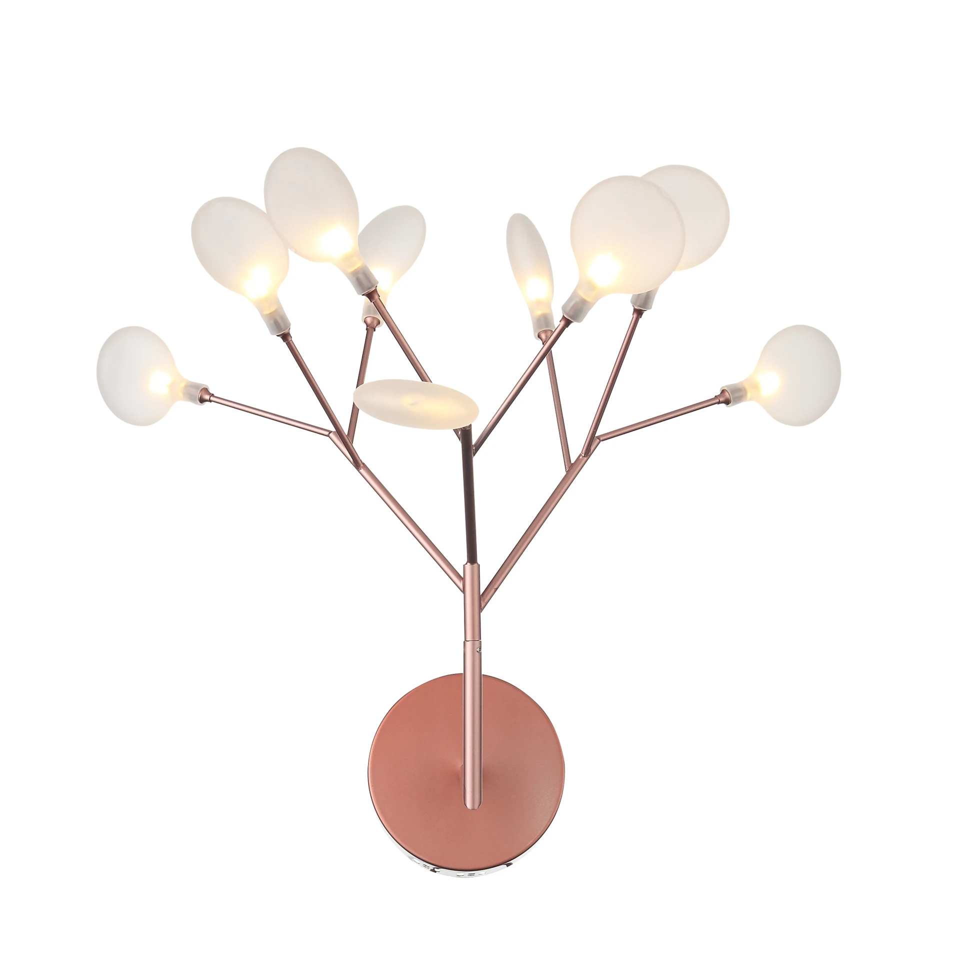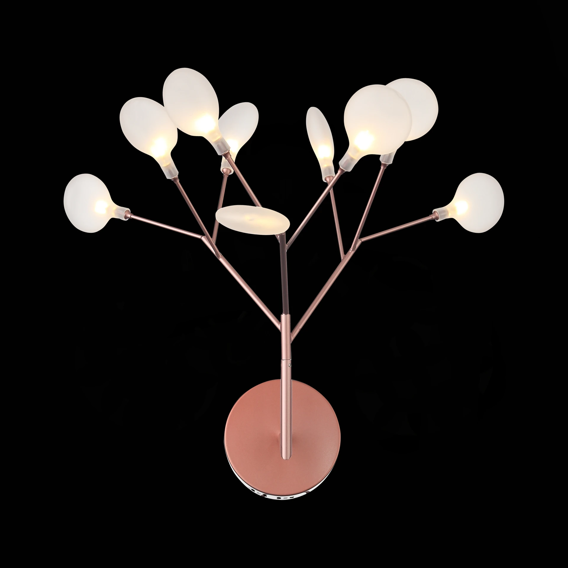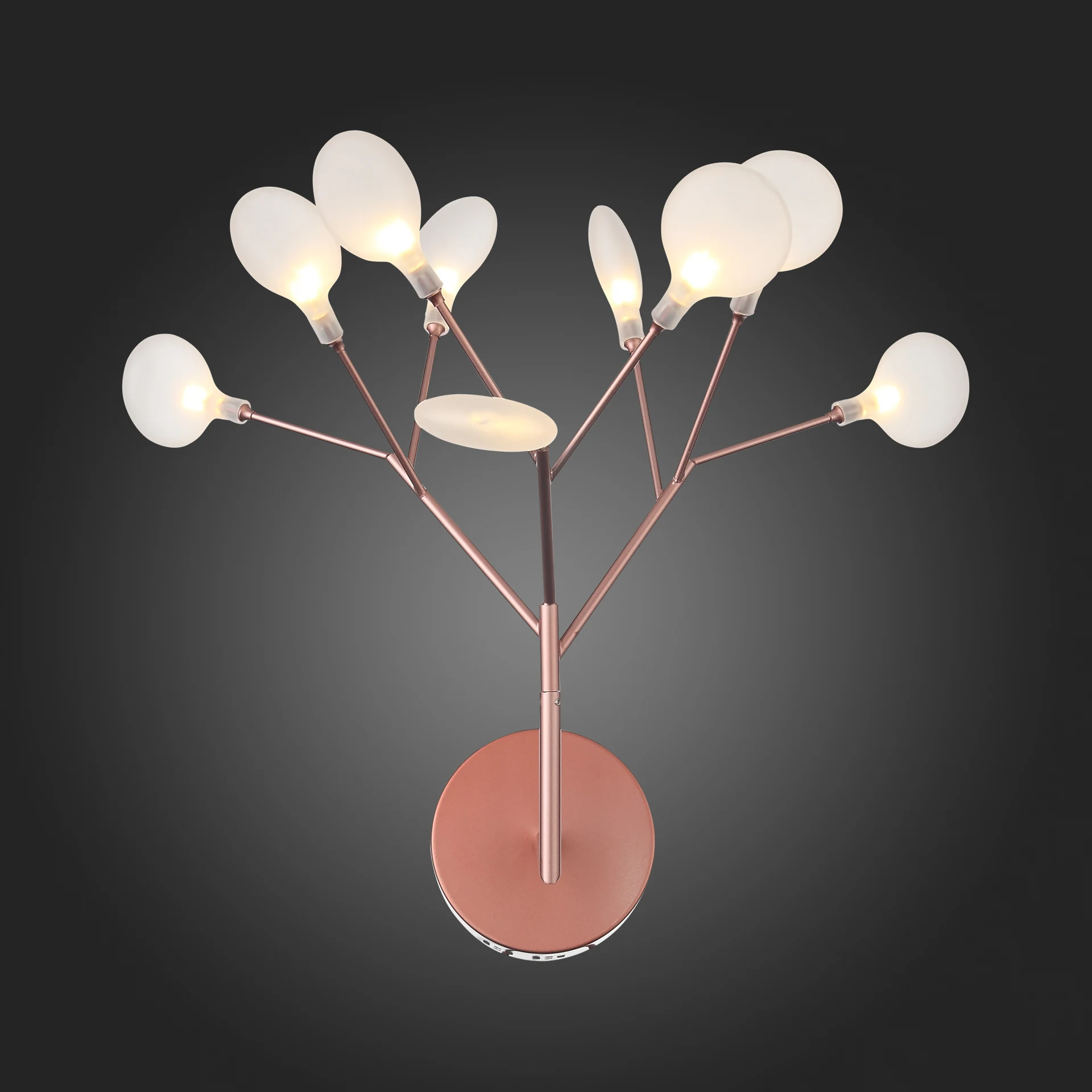 Настенное бра ST Luce Riccardo SL411.321.09 от ST Luce, подходит для гостиной, в стиле современный. Материал — металл, цвет розовое золото, плафон из стекла, цвет плафона белый, форма плафона — плоские. Модель имеет 9 ламп, цоколь G4, мощность 14 Вт, площадь освещения до 5 кв. м. Крепление — планка. Степень защиты IP20. Габариты: высота 380 мм, ширина 420 мм. Декор — лепестки, ветки, коллекция Riccardo.