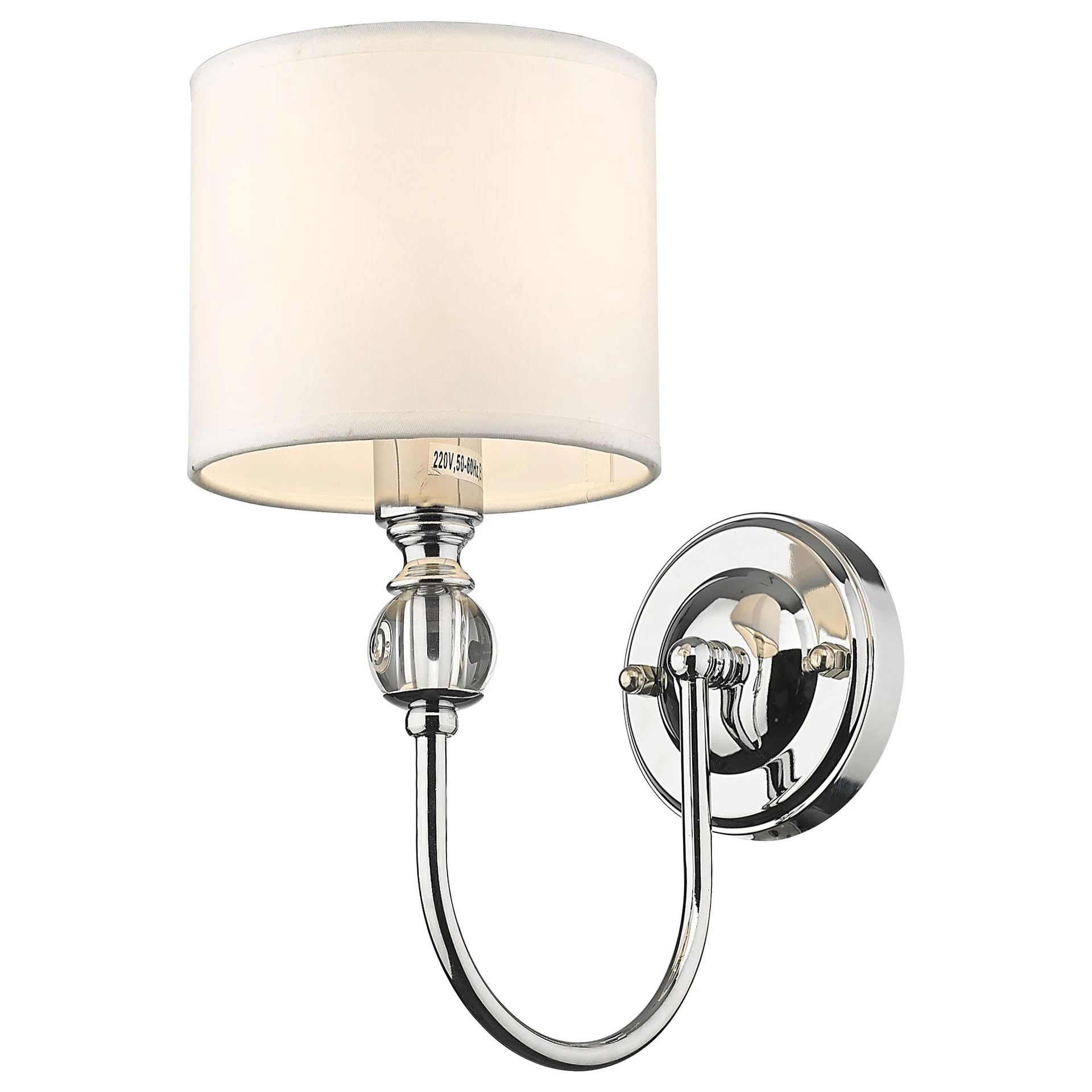 Настенное бра Velante 295-101-01 от Velante, подходит для гостиной, для спальни, в стиле классика. Материал — металл, цвет хром, плафон из пвх, цвет плафона белый, форма плафона — цилиндр. Модель имеет 1 лампу, цоколь E14, мощность 40 Вт. Крепление — планка. Степень защиты IP20. Габариты: высота 350 мм, ширина 180 мм, глубина 290 мм. Коллекция 295, бра — С абажурами.