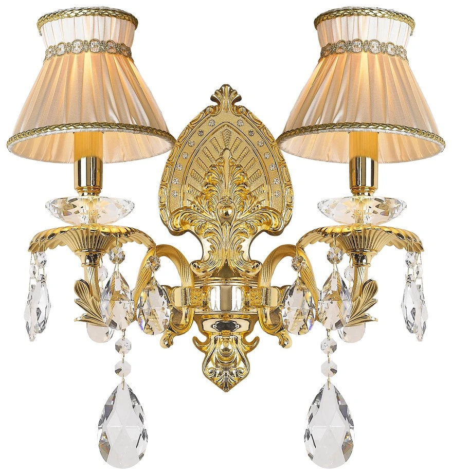 Настенное бра Wertmark Laurencia WE375.02.301 от Wertmark, подходит для гостиной, для спальни, в стиле классика. Материал — металл, цвет золото, плафон из ткань, цвет плафона бежевый, форма плафона — конус. Модель имеет 2 лампы, цоколь E14, мощность 40 Вт. Крепление — планка. Степень защиты IP20. Габариты: высота 430 мм, ширина 380 мм, глубина 120 мм. Декор — хрустальные подвески, коллекция Laurencia.