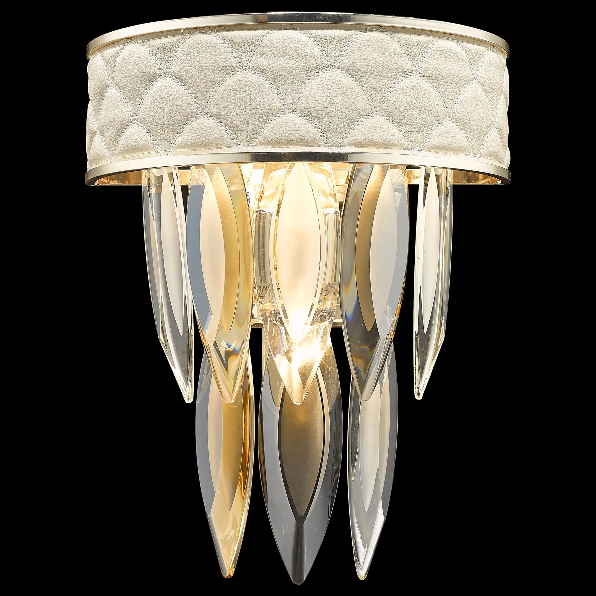 Настенное бра Wertmark Ornella WE143.03.301 от Wertmark, подходит для гостиной, в стиле современный. Материал — металл, цвет белое золото, плафон из кожа, цвет плафона прозрачный. Модель имеет 3 лампы, цоколь E14, мощность 40 Вт. Крепление — планка. Степень защиты IP20. Габариты: высота 320 мм, ширина 260 мм. Коллекция Ornella.