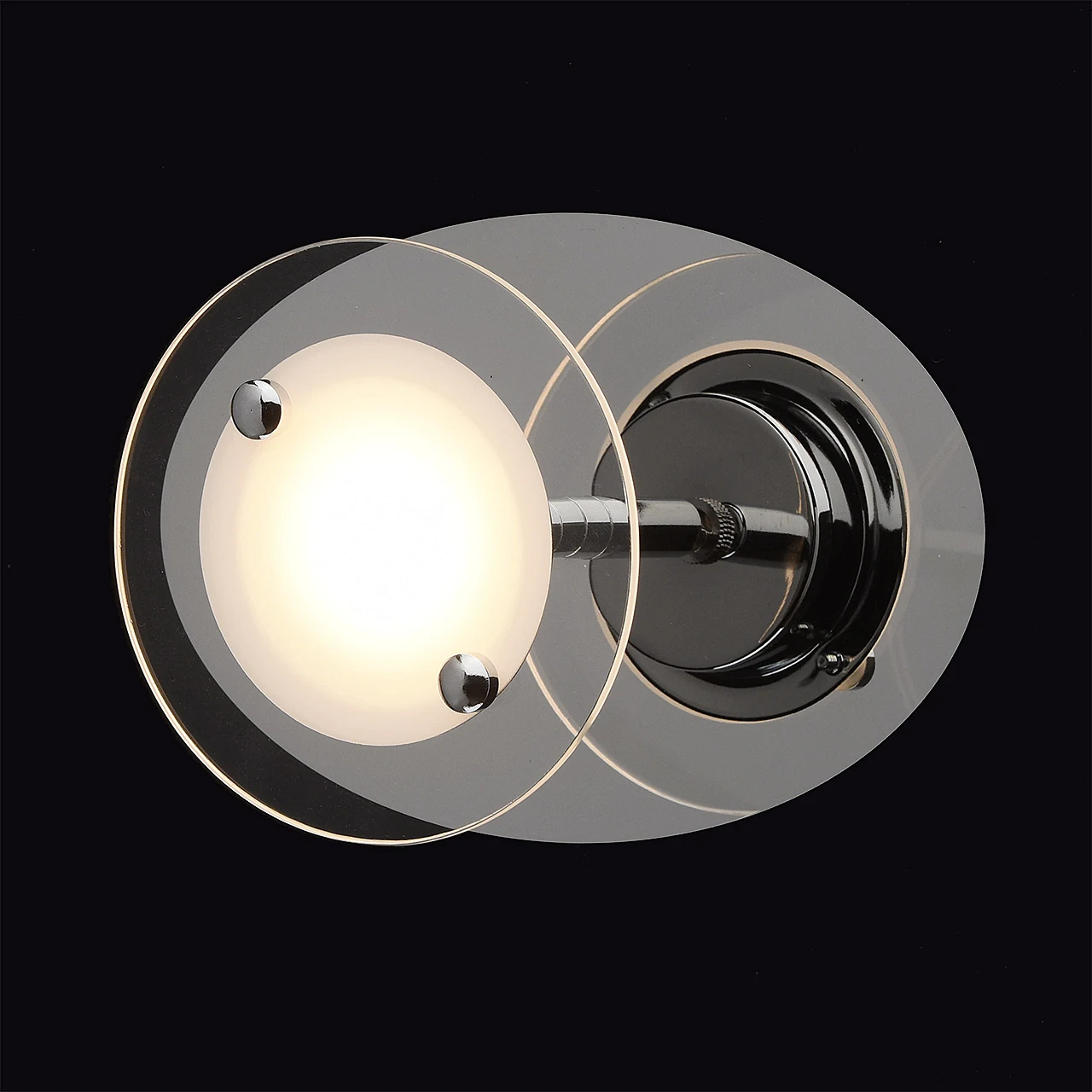 Настенный светильник De Markt Граффити 678021201 от De Markt, подходит для гостиной, в стиле хай-тек. Материал — металл, цвет хром, форма плафона — плоский. Модель имеет 1 лампу, цоколь LED, мощность 5 Вт. Полностью светодиодная. Степень защиты IP20. Габариты: высота 120 мм, ширина 200 мм. Коллекция Граффити, бра — Полностью светодиодная, бра — Круги.