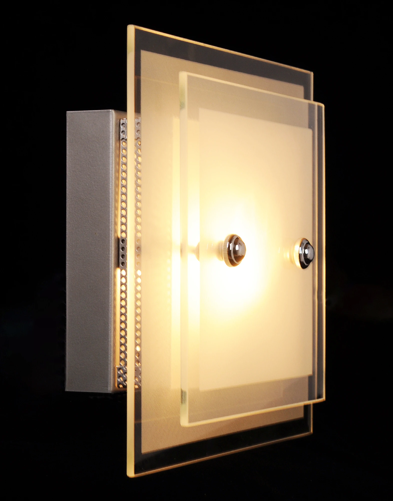 Настенный светильник Doge Luce 50263 от Doge Luce — настенные бра. Материал — металл, цвет хром, плафон из стекла, цвет плафона белый матовый, форма плафона — плоский. Модель имеет 1 лампу, цоколь G9, мощность 40 Вт, площадь освещения до 3 кв. м. Направление света — равномерное. Степень защиты IP20. Габариты: высота 200 мм, ширина 200 мм. Бра — С плафонами, бра — Квадратные.