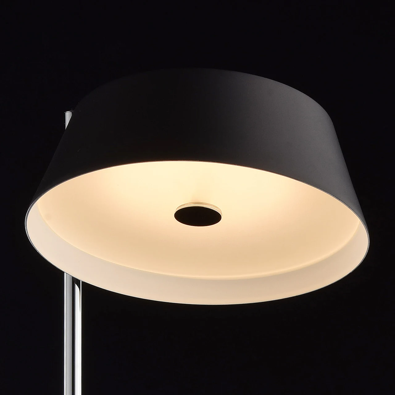 Настольная лампа De Markt Ривз 674030701 от De Markt, подходит для прихожей, в стиле современный. Материал — металл, цвет хром, форма плафона — круг. Модель имеет 1 лампу, цоколь LED, мощность 10W. Полностью светодиодная, выключатель на шнуре. Степень защиты IP20. Габариты: высота 560 мм, ширина 220 мм. Коллекция Ривз, настольная лампа — Металические плафоны, настольная лампа — Светодиодные.