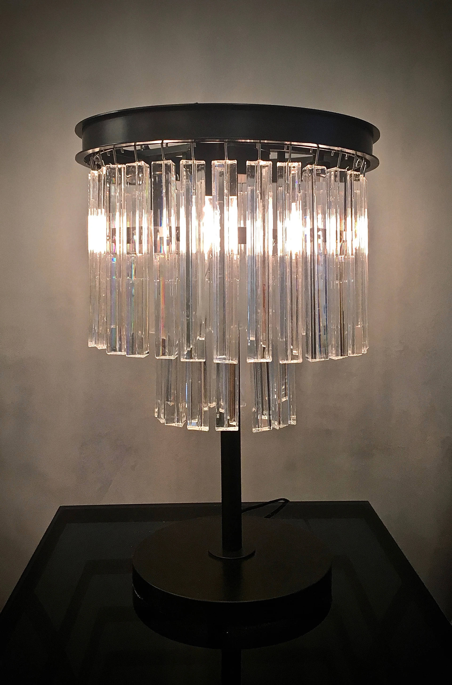 Настольная лампа Delight Collection 1920s Odeon KR0387T-3 от Delight Collection, подходит для гостиной, в стиле современный. Материал — металл, цвет черный, плафон из стекла, цвет плафона прозрачный, форма плафона — каскадные. Модель имеет 3 лампы, цоколь E27, мощность 60 Вт. Выключатель на шнуре. Габариты: высота 360 мм, ширина 630 мм. Коллекция 1920s Odeon, настольная лампа — Каскадные, настольная лампа — Круглые.