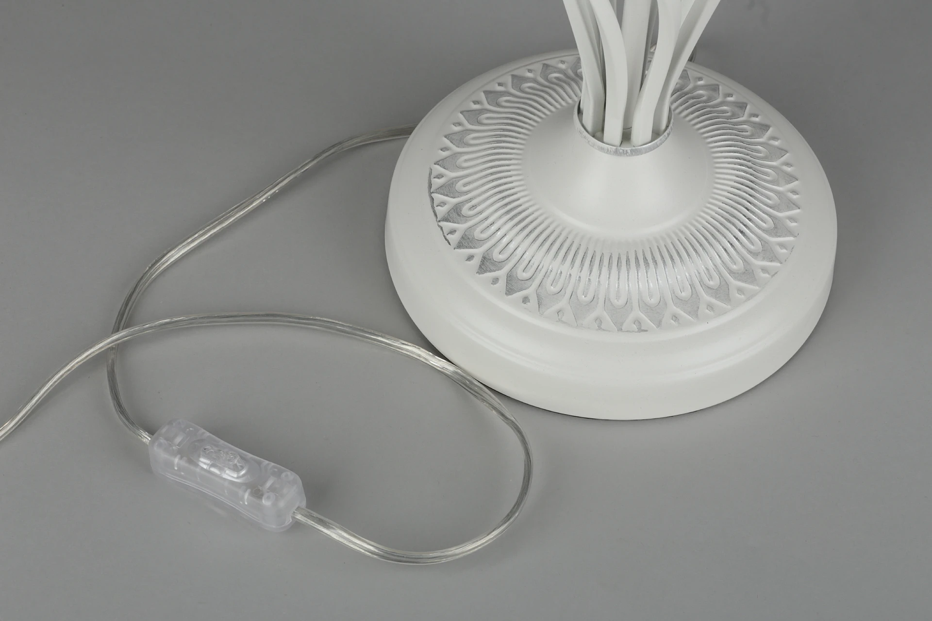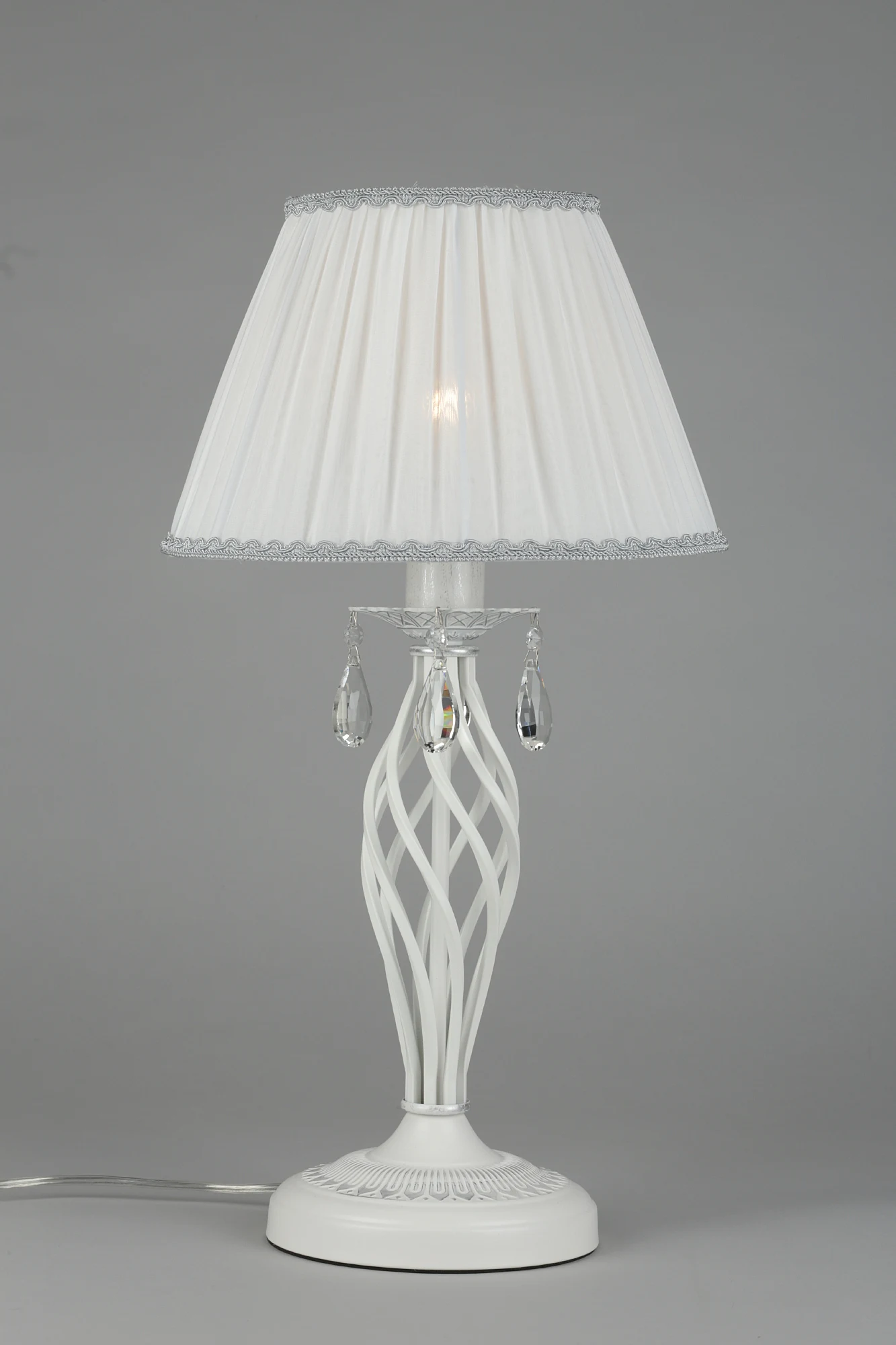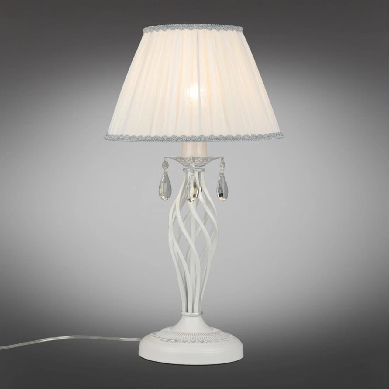 Настольная лампа Omnilux Cremona OML-60814-01 от Omnilux, подходит для спальни, в стиле прованс. Материал — металл, цвет белое серебро, плафон из ткань, цвет плафона белый, форма плафона — круглый абажур. Модель имеет 1 лампу, цоколь E27, мощность 40 Вт. Выключатель на шнуре. Габариты: высота 550 мм, ширина 300 мм, диаметр 300 мм. Декор — хрустальные подвески, коллекция Cremona.