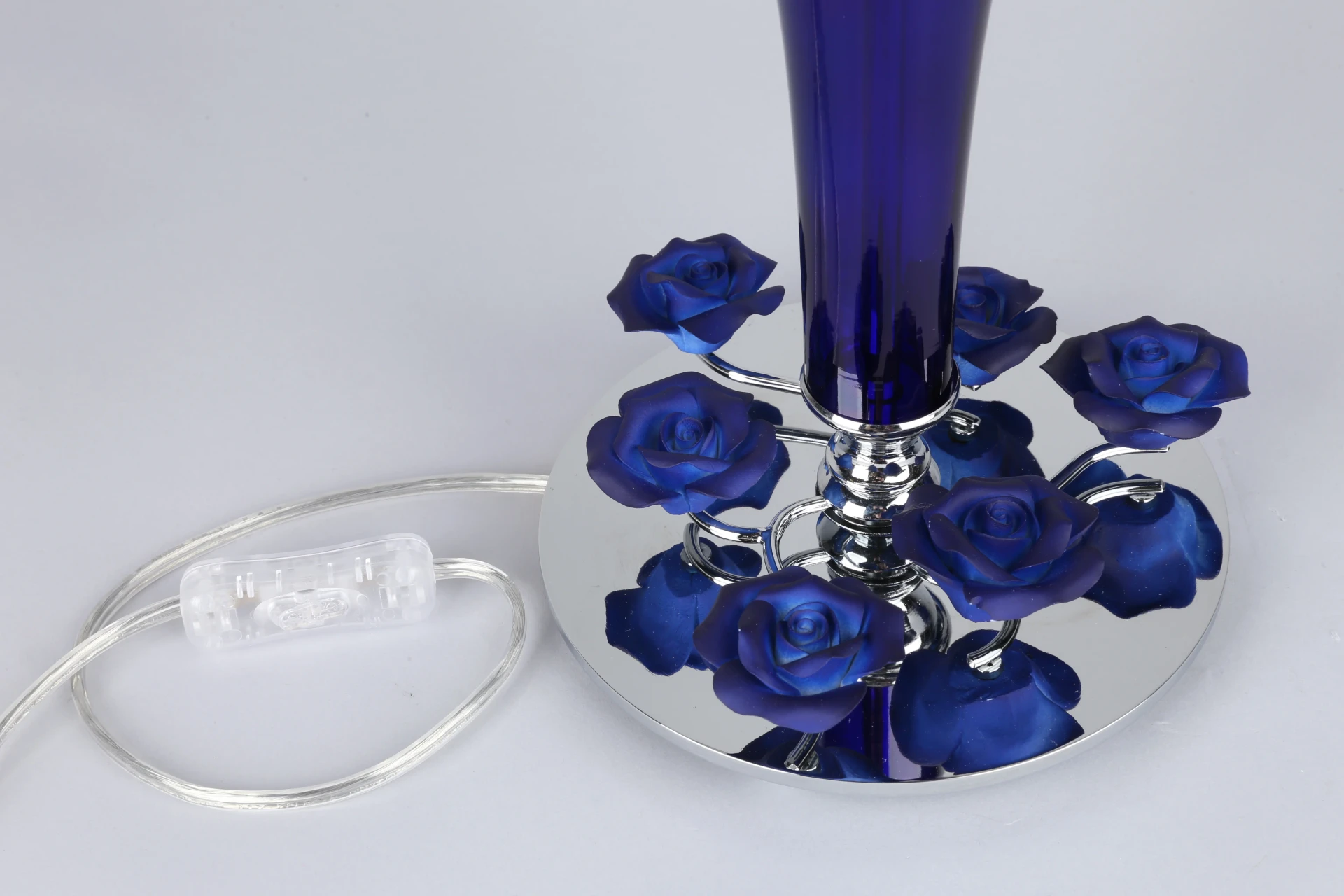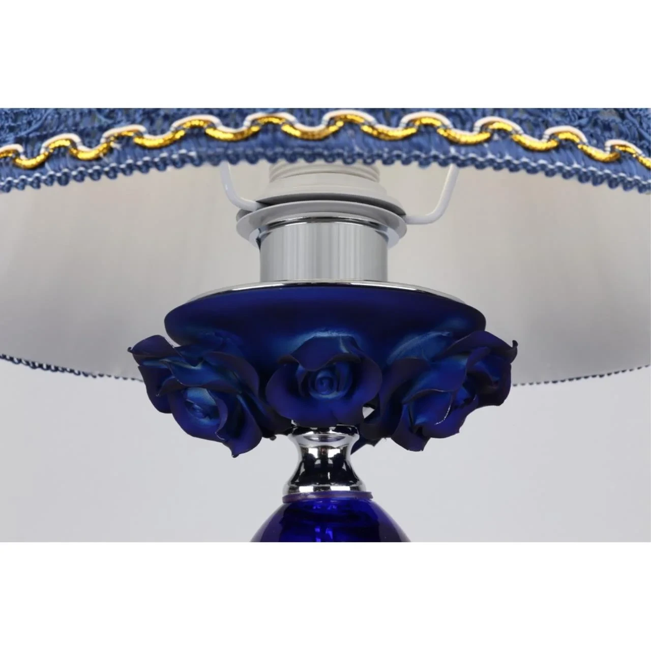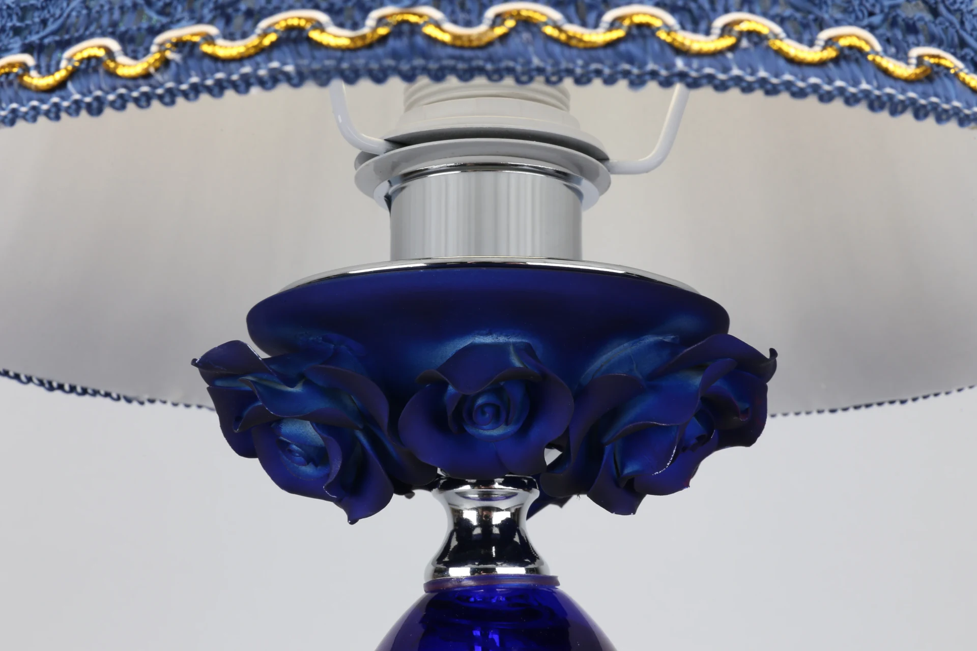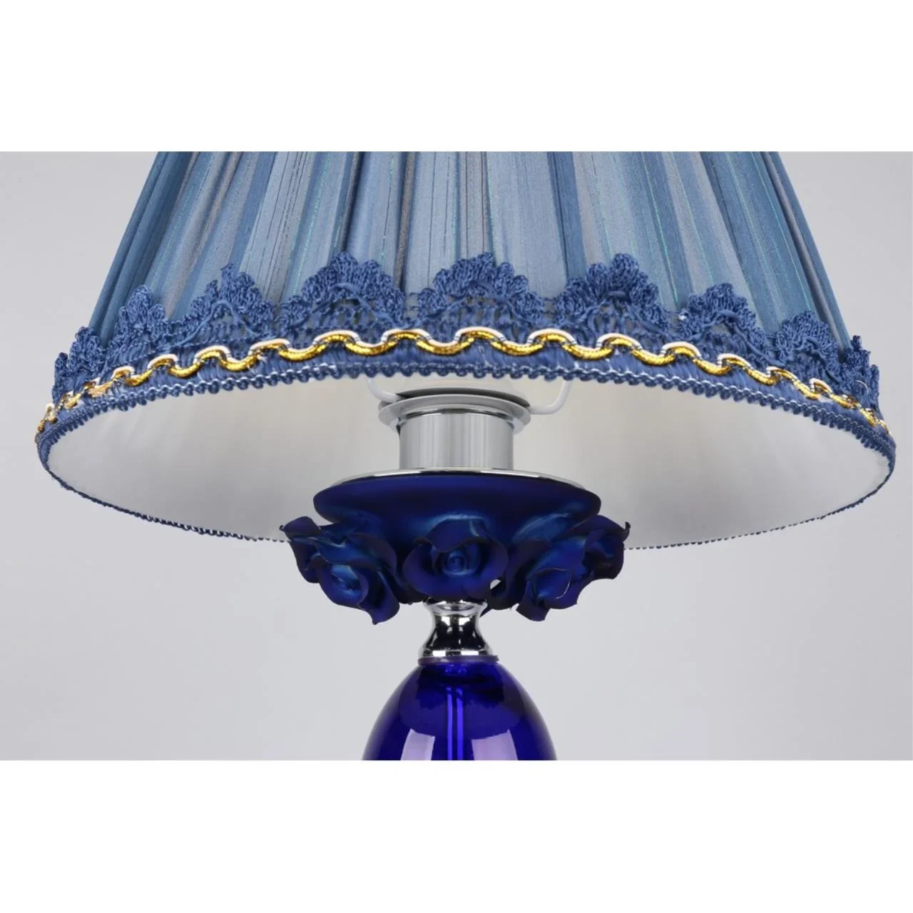 Настольная лампа с цветочками Muntiggioni OML-70404-01 Omnilux от Omnilux, подходит для гостиной, в стиле флористика. Материал — стекло, цвет синий, плафон из ткань, цвет плафона синий, форма плафона — круглый абажур. Модель имеет 1 лампу, цоколь E27, мощность 60 Вт. Габариты: высота 570 мм, ширина 300 мм, диаметр 300 мм. Настольная лампа — Абажуры, настольная лампа — Стеклянные.