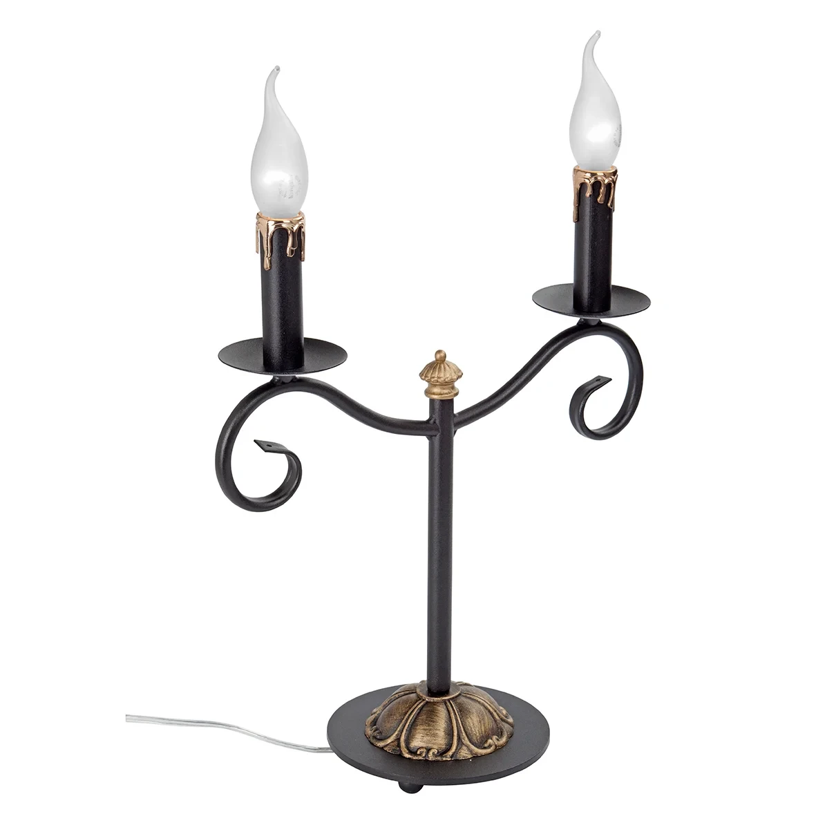 Настольная лампа Vitaluce Premium V1039 V1039/2L от Vitaluce, подходит для гостиной, в стиле кованые. Материал — металл, цвет черный, форма плафона — свечи. Модель имеет 2 лампы, цоколь E14, мощность 60W. Выключатель на шнуре. Габариты: высота 380 мм, ширина 650 мм, диаметр 650 мм. Коллекция V1039.