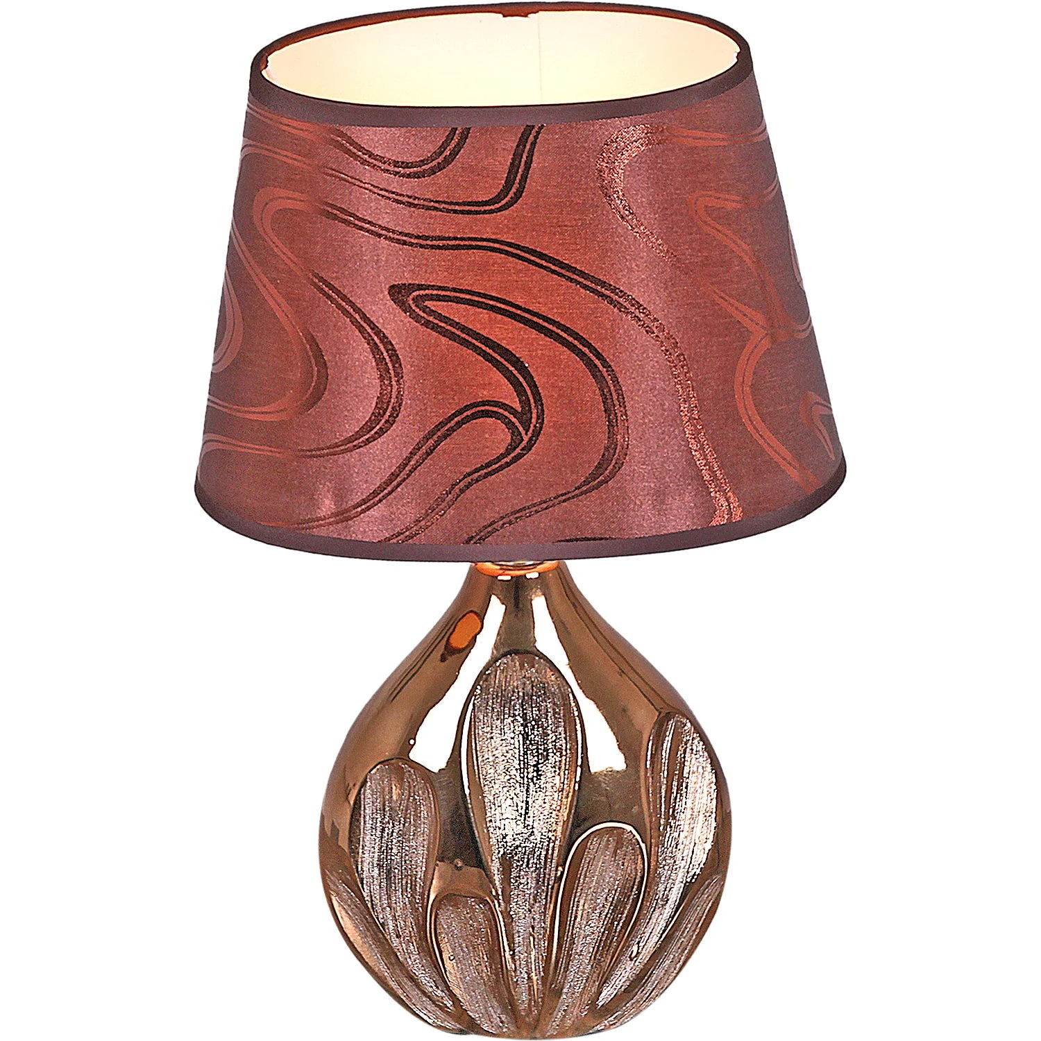Настольная лампа Reluce 01797-0.7-01 от Reluce — настольные лампы. Материал — керамика, цвет золото, плафон из текстиль, цвет плафона коричневый. Модель имеет 1 лампу, мощность 40 Вт. Габариты: высота 310 мм, ширина 150 мм.